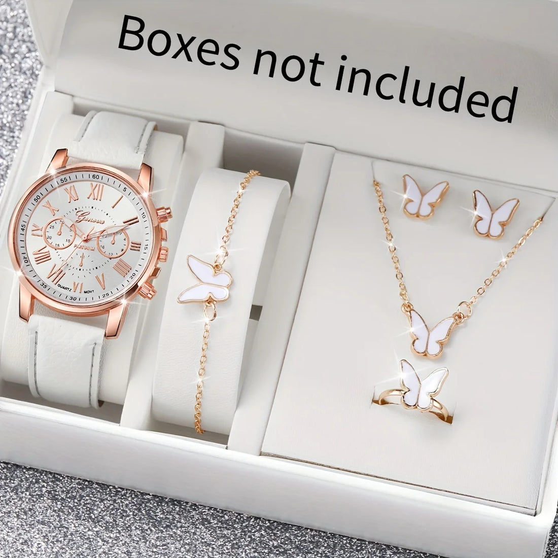 6PCS/Set Women's Watch Butterfly Jewelry Set Leather Band Analog Quartz Watches(Without Box)