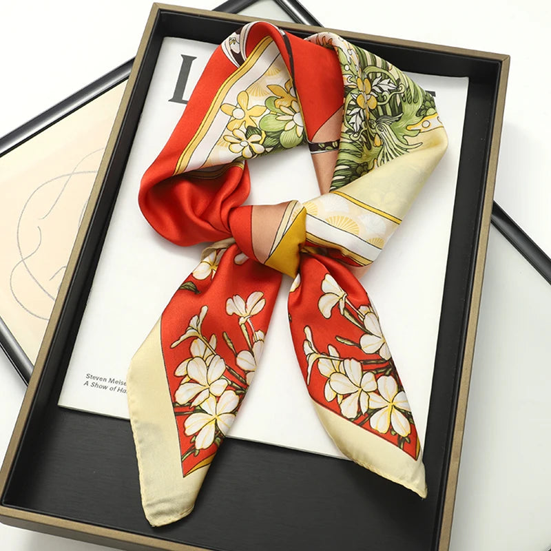 70x70cm Women Silk Scarf Small Satin Square Print Wrap Foulard Femme Handkerchief Bandana Neck Hair Skinny Tie Scarves Shawls