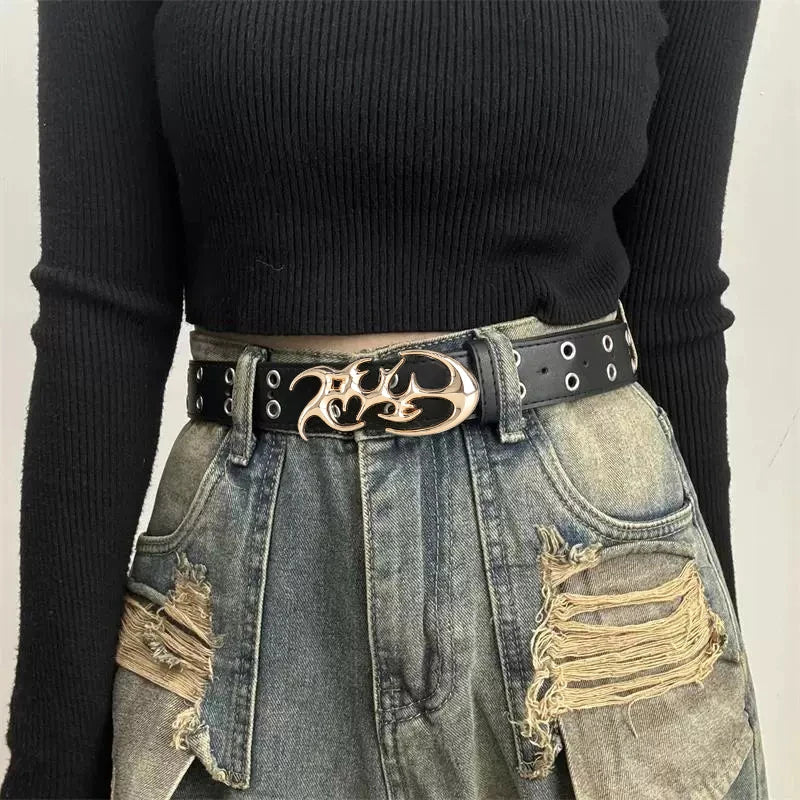 New Stylish Irregular Alloy Buckle Waist Belt, Casual Retro Punk Y2k Belt ,For Men Women Trendy Accessory Belts ,For Ideal Gifts
