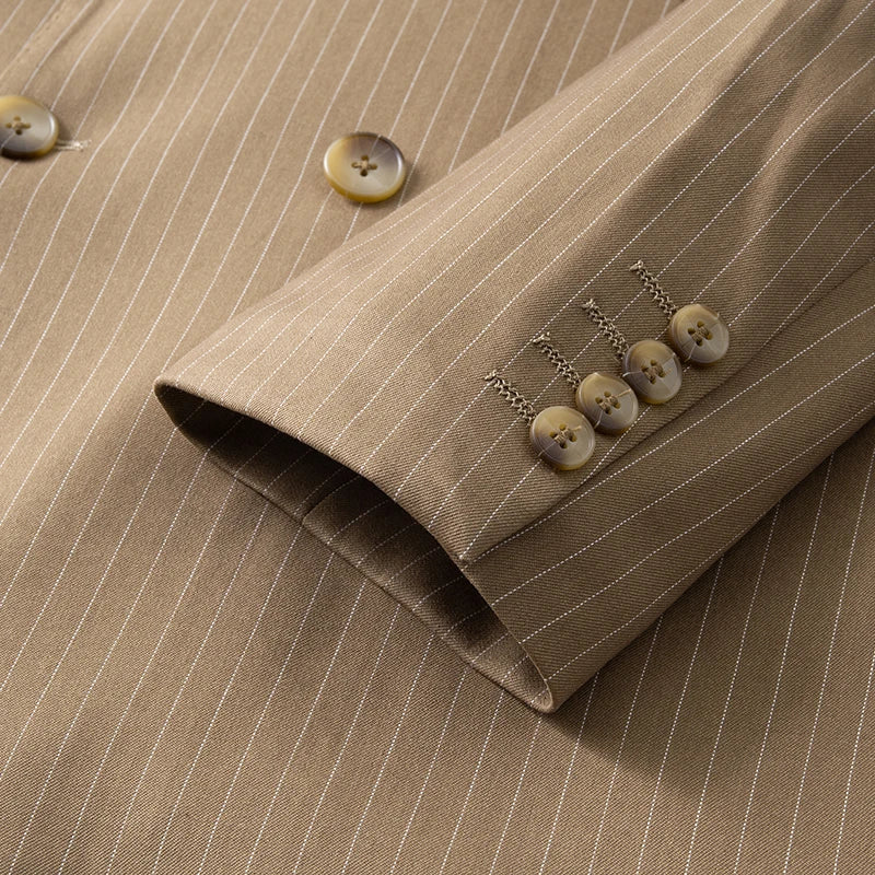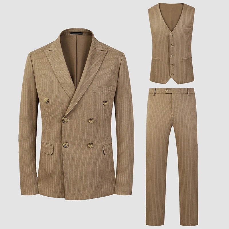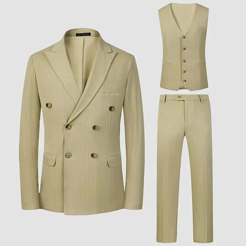 Two high-quality men's fashion, trendy and stylish striped solid color business and casual wedding three-piece sets
