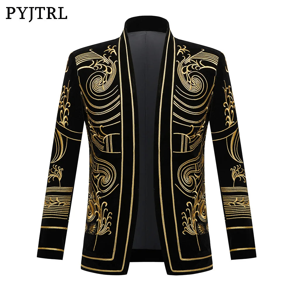 Velvet heavy embroidery suit jacket for men, nightclub and bar trendsetters, performance costumes, dance party and singer gowns