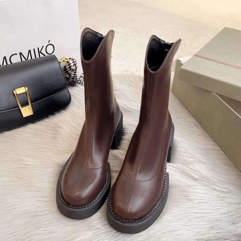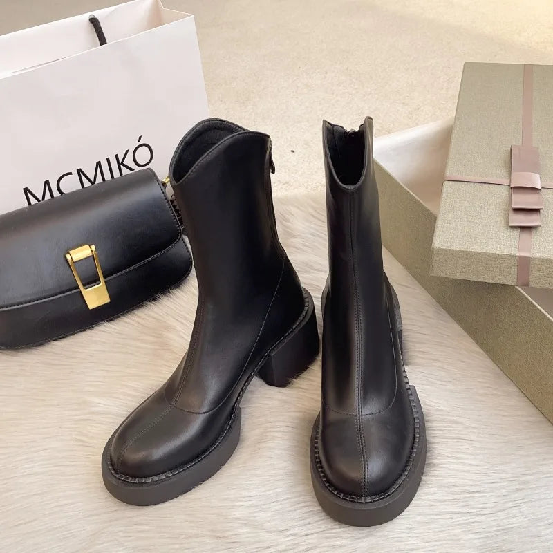 Winter British style fashion boots for men and women, thick and warm short boots with thick soles and plush lining, model 2025.