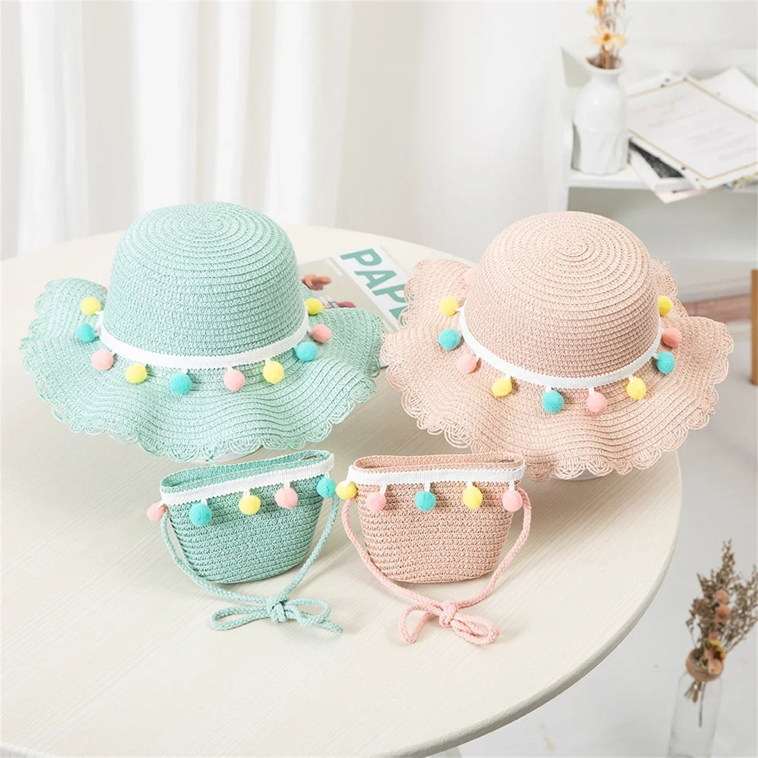 Kids Girls Summer Fashion Children Sunscreen Sun Hat Straw Hat Bag For Girls Cool Hat Girl Cute Breathable BabyAccessories