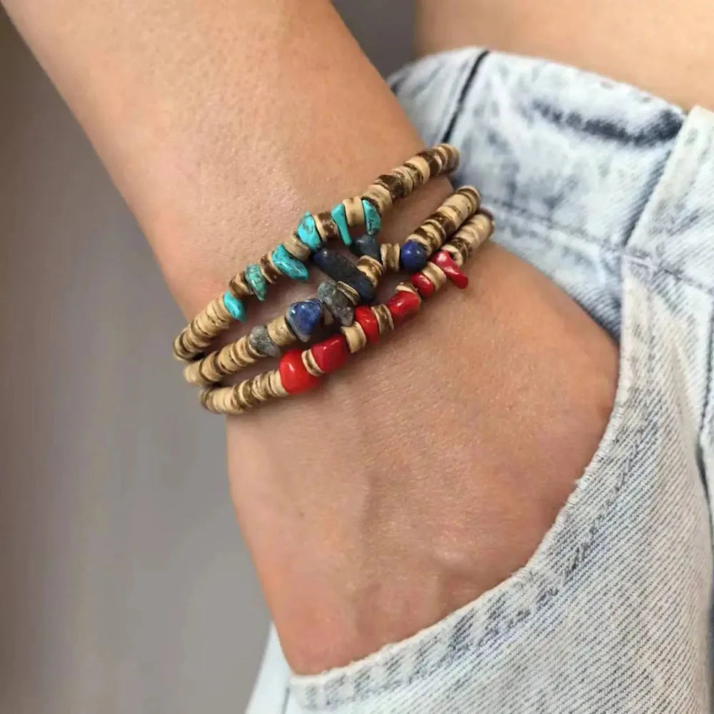 Bohemia Coconut Shell Wood Bead Bracelet Retro Irregular Natural Stone Men Jewelry Fashion Accessories Women Gifts