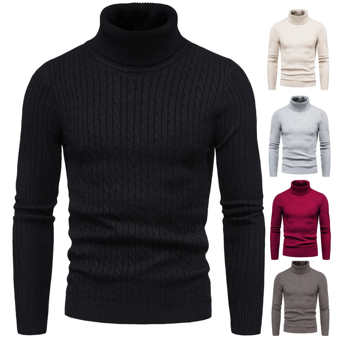 2024 Autumn New Sweater Men's High Collar Elastic Knit Fried Dough Twists Pattern Casual Versatile Top Tight and Warm