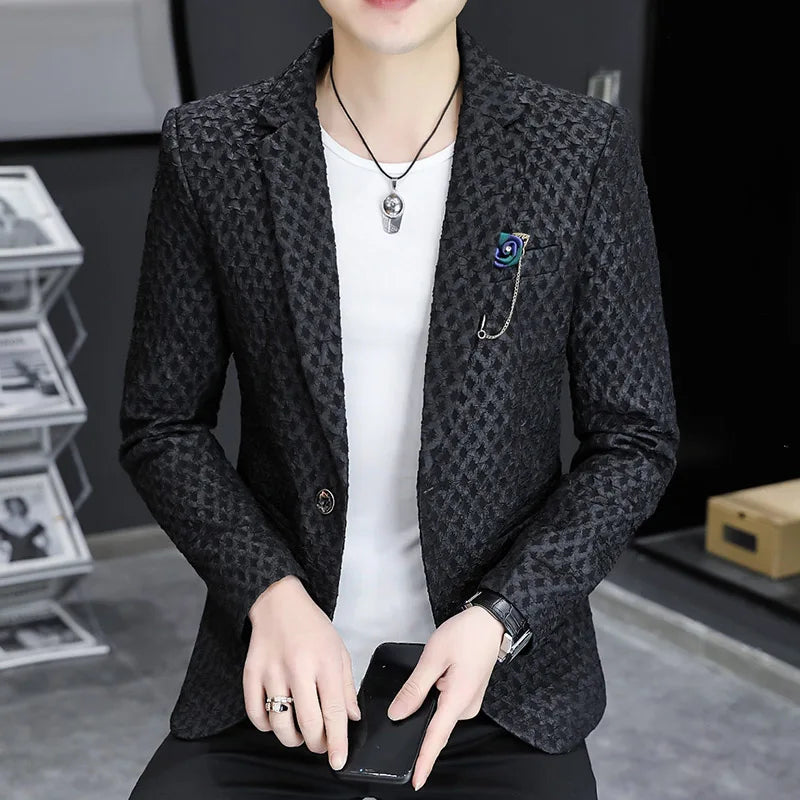 2024 Autumn New Fashion Handsome Men Business Leisure Banquet Shopping Slim-fit Korean Suit Costume Croisé Homme Blazer