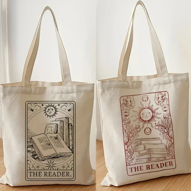 Vintage The Reader Pattern Canvas Shoulder Bag, Lightweight Sun Pattern Shopper Bag, Versatile Storage Bag