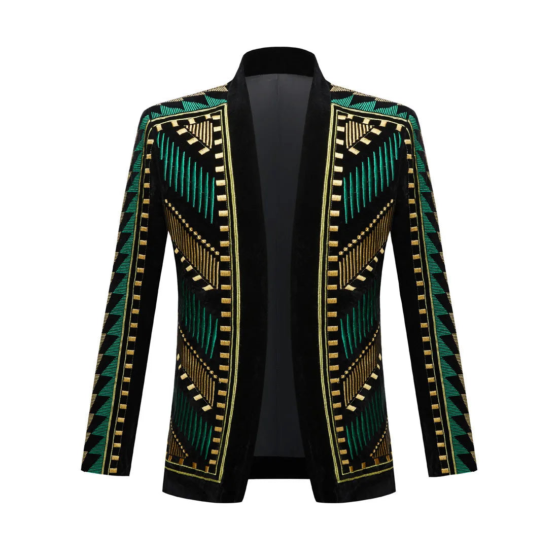 Velvet heavy embroidery suit jacket for men, nightclub and bar trendsetters, performance costumes, dance party and singer gowns