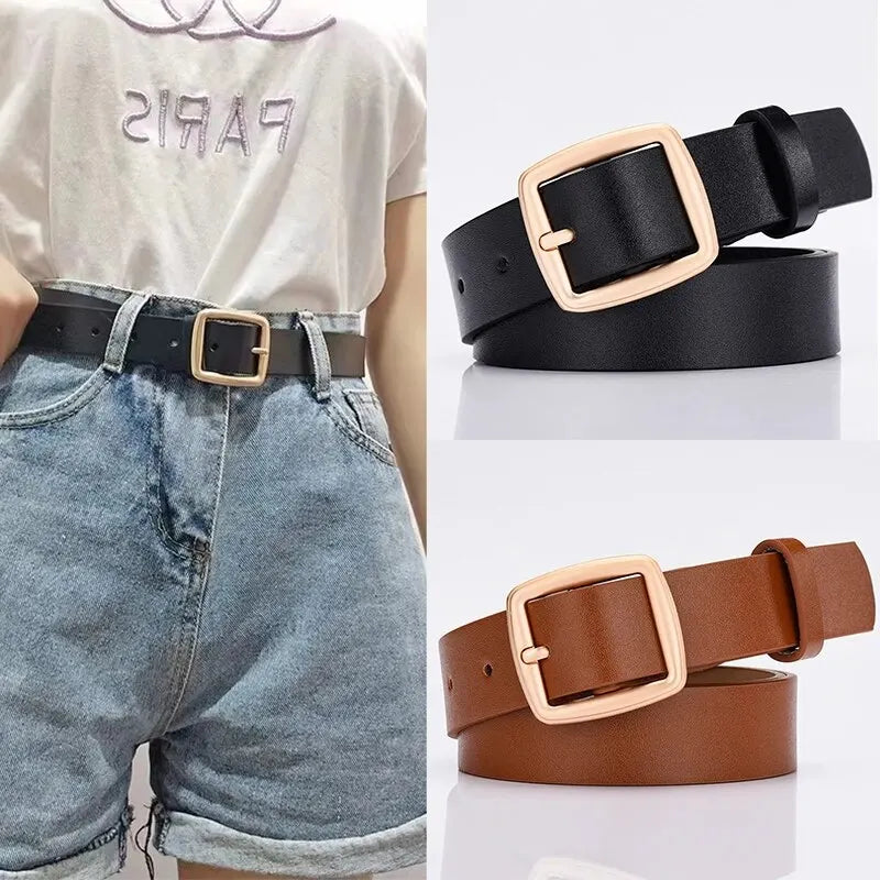 Women's Belt Soft PU Leather Belt Square Pin Buckle Jeans Belt Korean Version Chic Luxury Brand Ladies Vintage Female Waistband