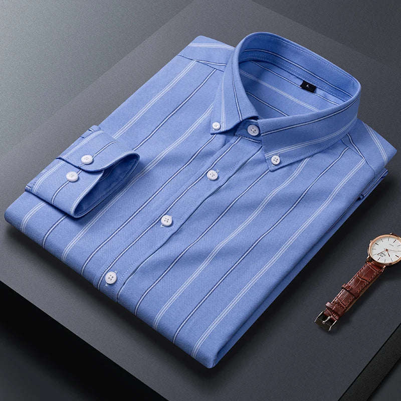 Autumn high-quality men's fashionable, stylish, versatile, casual, business striped long-sleeved Oxford fabric shirt