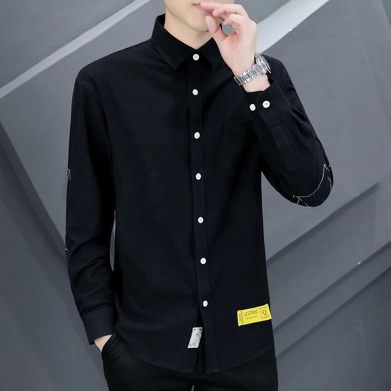 High-quality, fashionable, stylish and versatile casual business solid-color pure cotton long-sleeved shirt top for young people