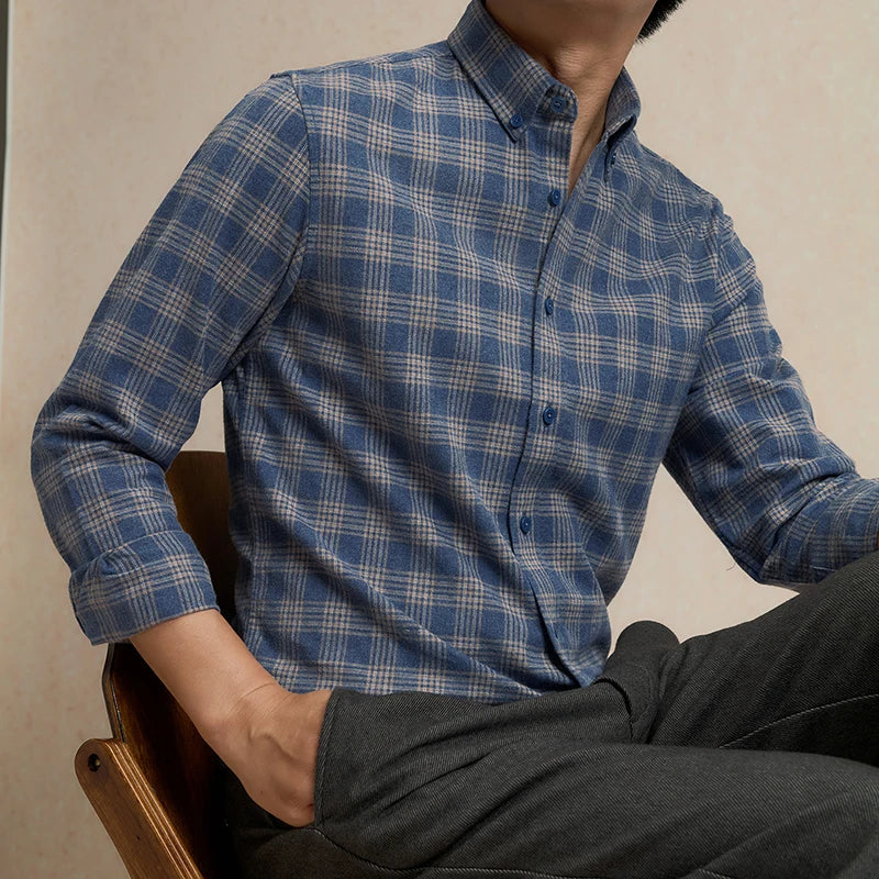 High-quality autumn new stylish and cool long-sleeved men's shirt with cotton checkered double-sided brushed texture