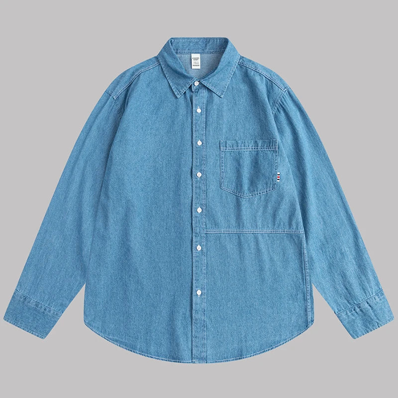 High-quality autumn new pure cotton men's fashionable, cool and versatile casual banquet denim long-sleeved shirt
