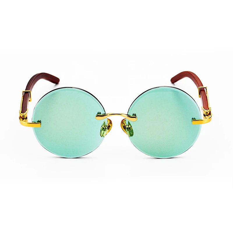 Natural Crystal Green Sunglasses Mineral Lens Woman Round Rimless Glass Sunglasses Man Luxury Vintage Wooden Frame Anti Scratch