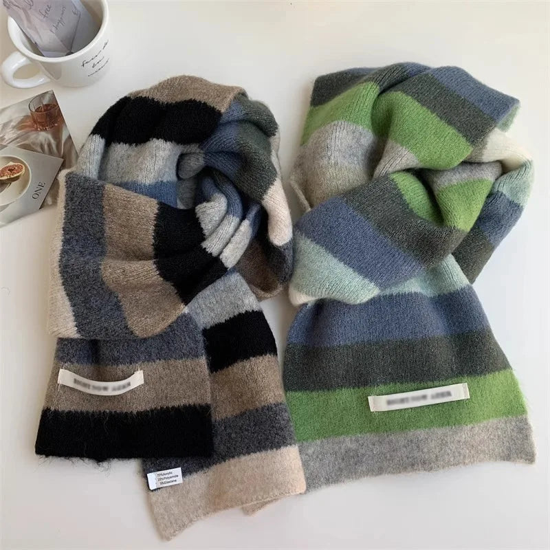 Women's Rainbow Color Wool Knitted Winter Warm Thickened Versatile Decorative Scarf Neck Gaiter Suitable Shawl Wraps