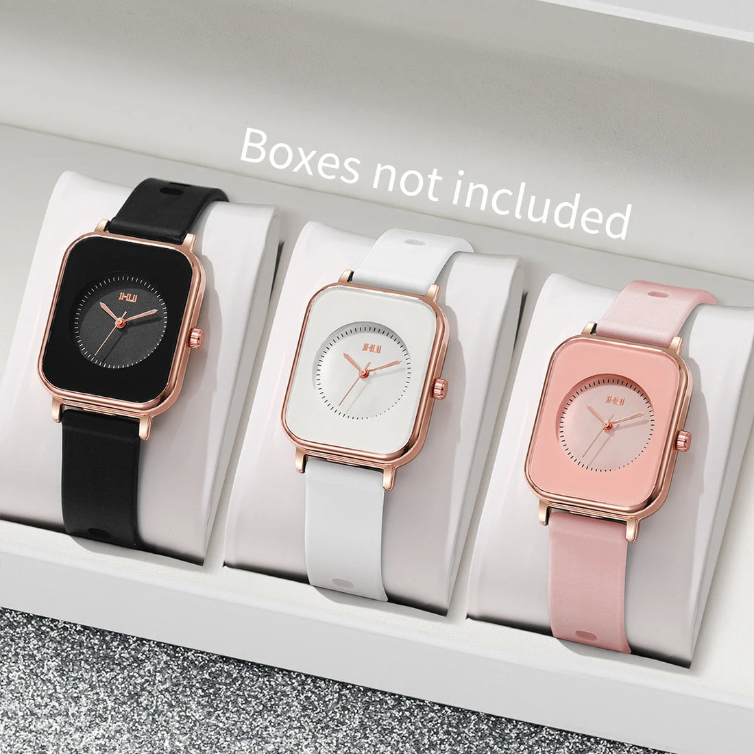 3/6PCS Women Watches Set Fashion Square Quartz Watch Casual Silicone Band Wristwatches for Women Gift Reloj Mujer(Without Box)