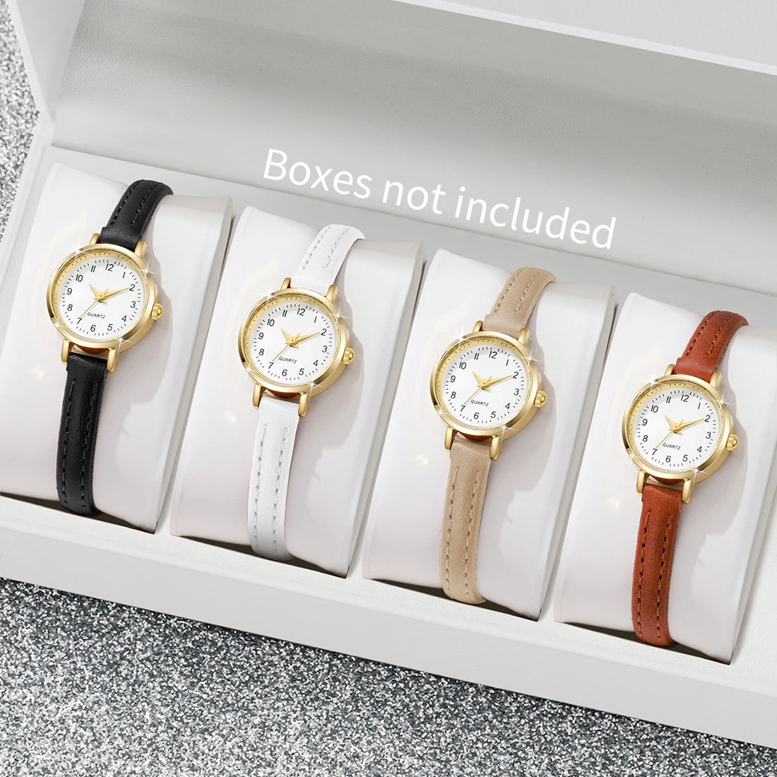 4PCS/Set Women Watches Fashion Small Dial Leather Band Quartz Watch for Ladies Reloj Mujer Girls Clock Gift(Without Box)