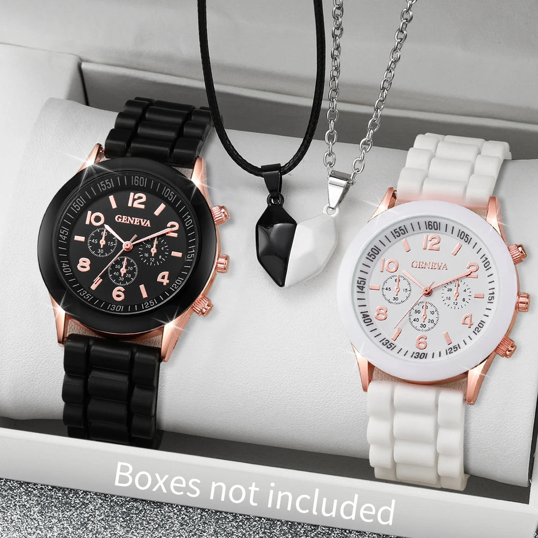 4PCS Fashion Couple Watches Set Casual Silicone Strap Women Wristwatch Men's Quartz Watch Reloj Mujer(Without Box)