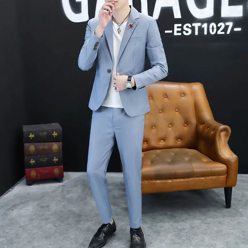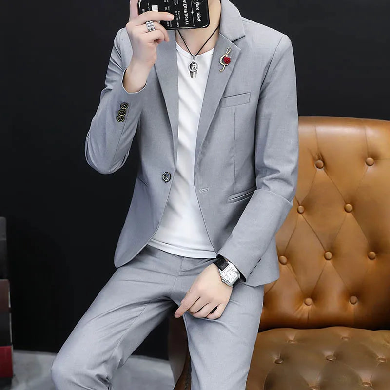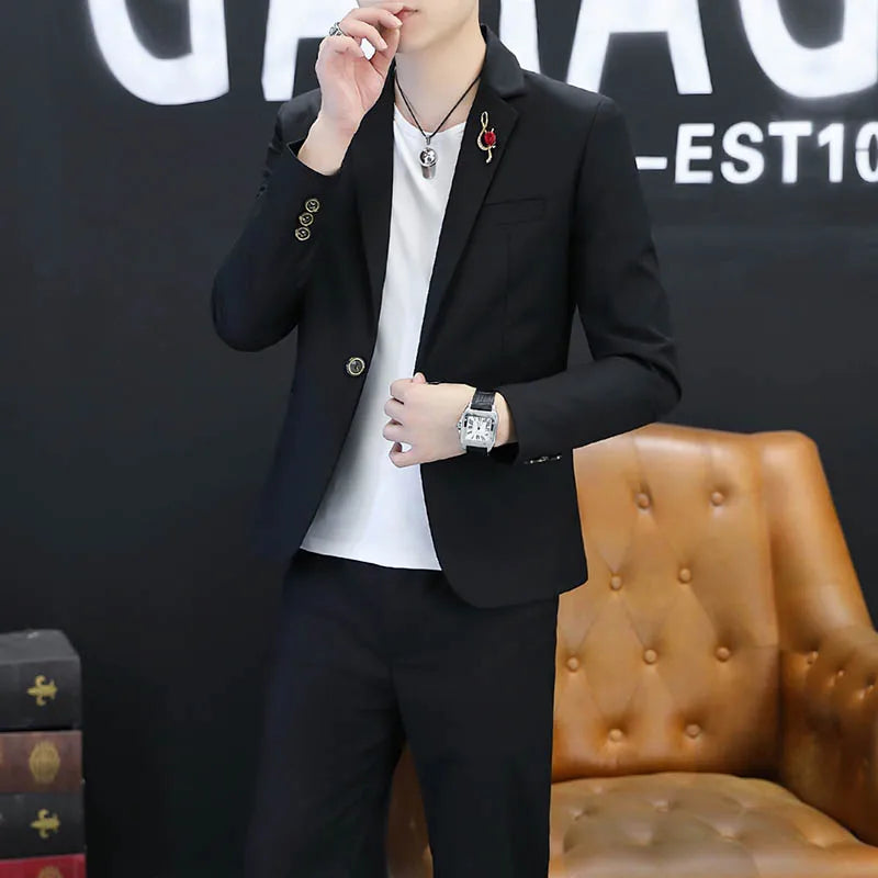 2025 Men's stylish and cool Korean-style fitted jacket, groom's wedding dress, business formal wear, casual small suit for men.