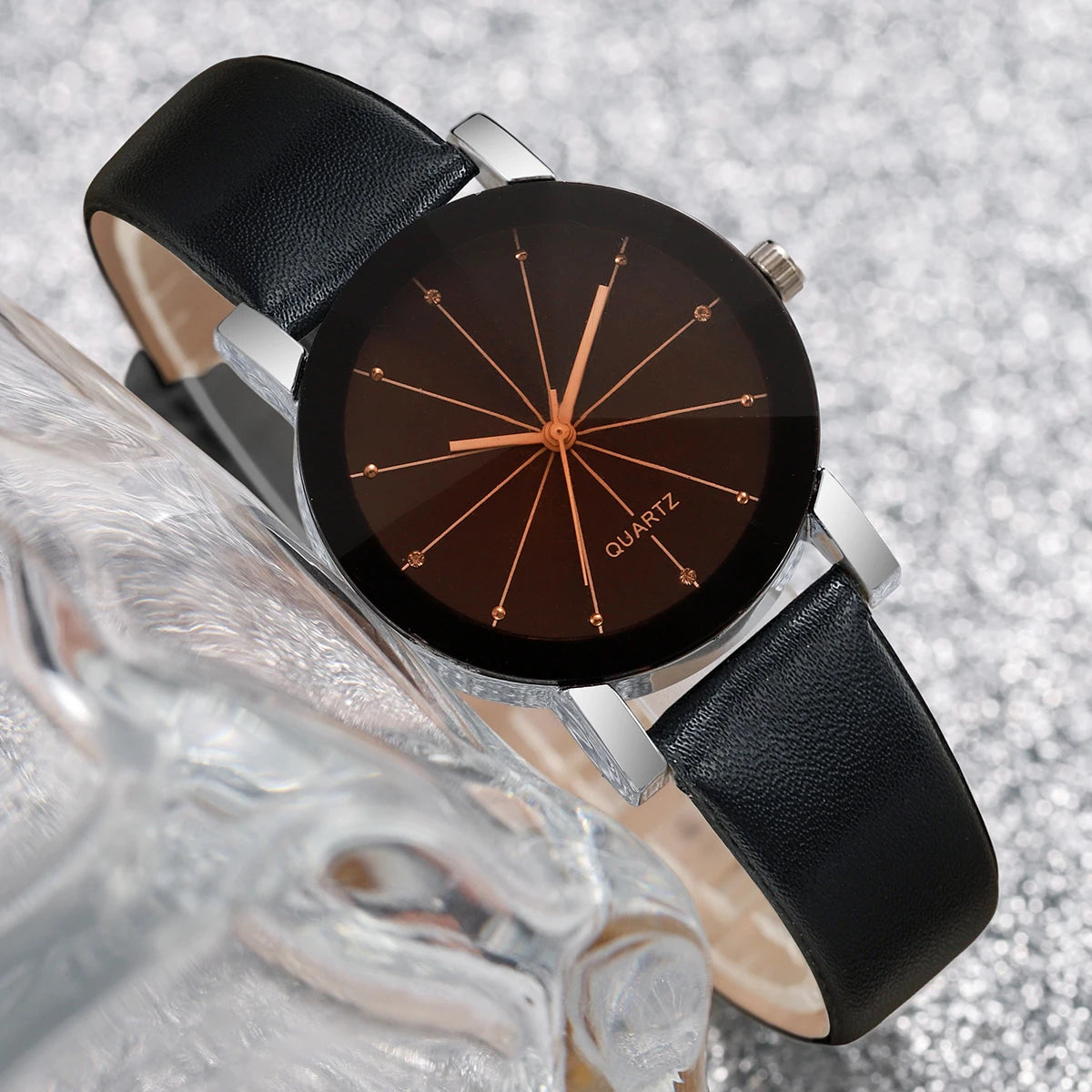 2PCS Fashion Women's Watches Rhinestone Dial Quartz Watch Casual Leather Band Wristwatches(Without Box)