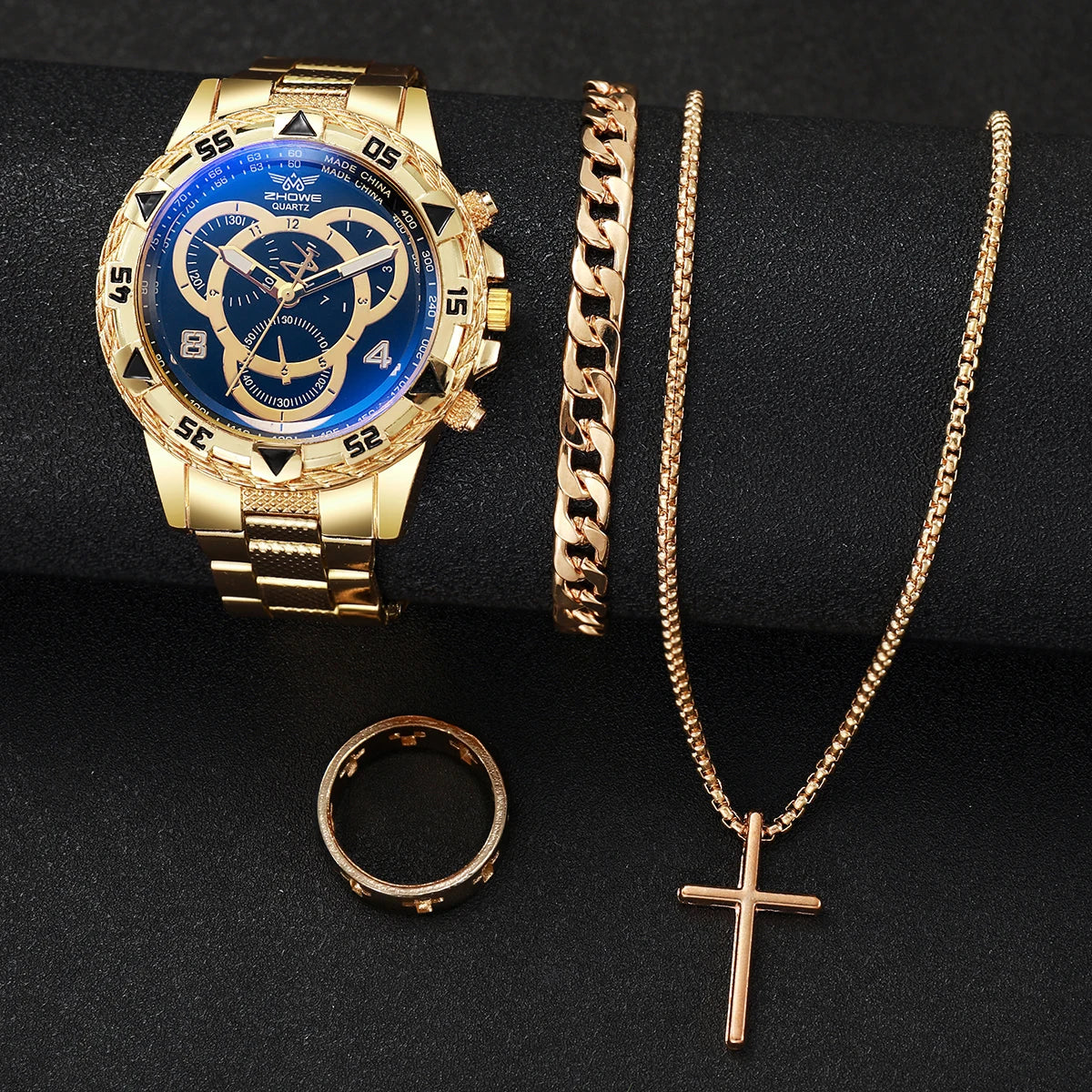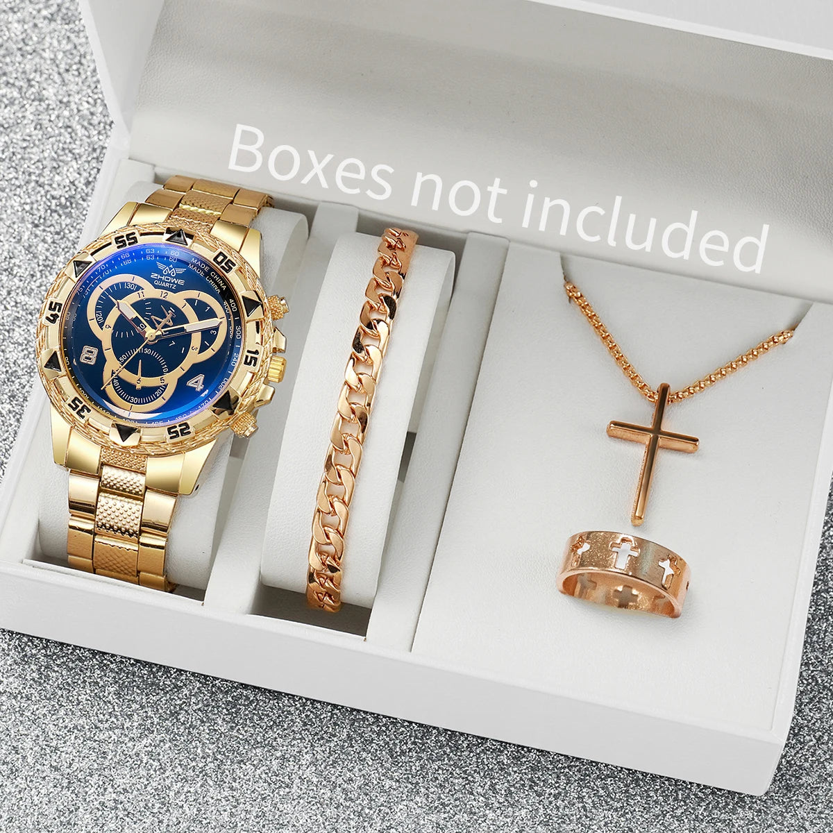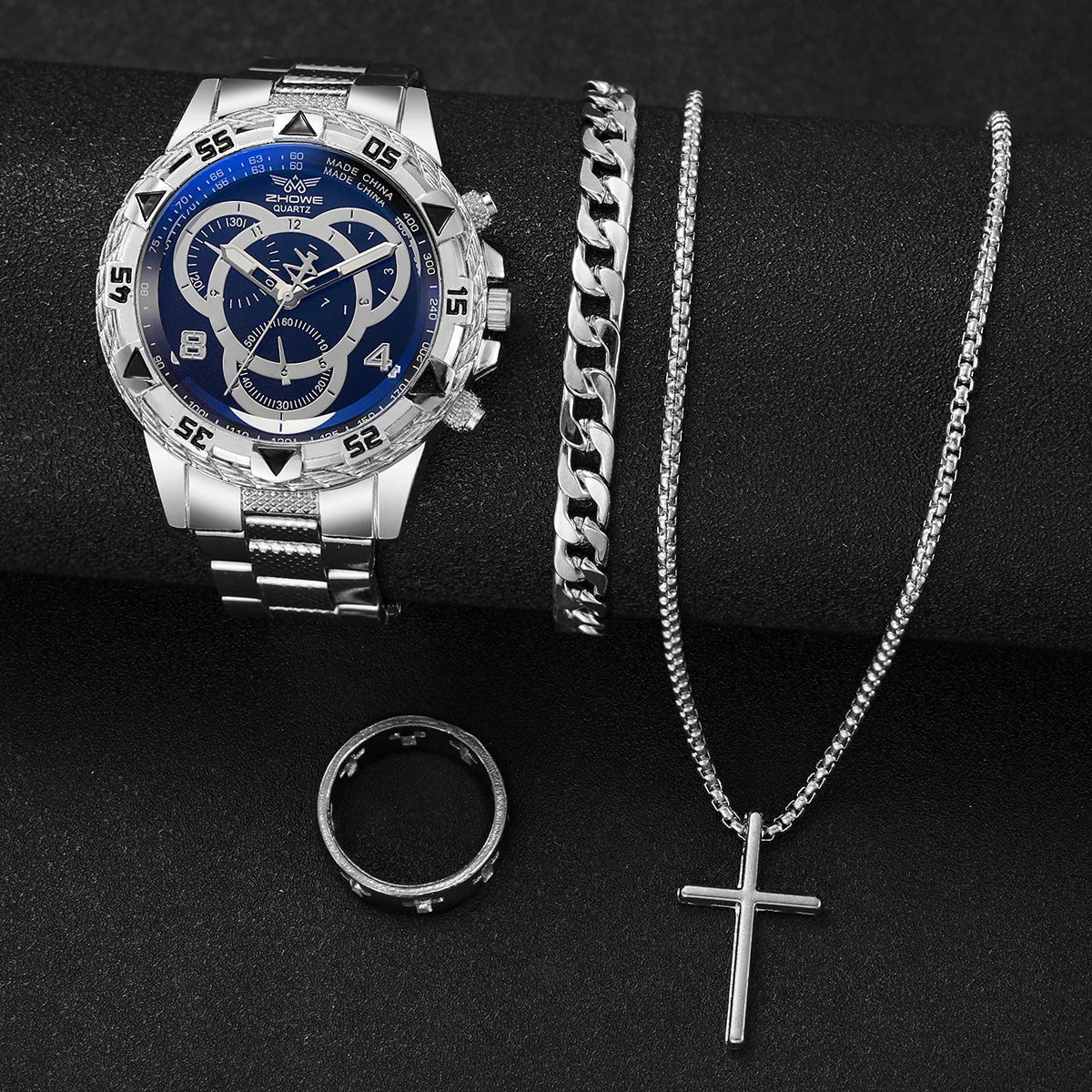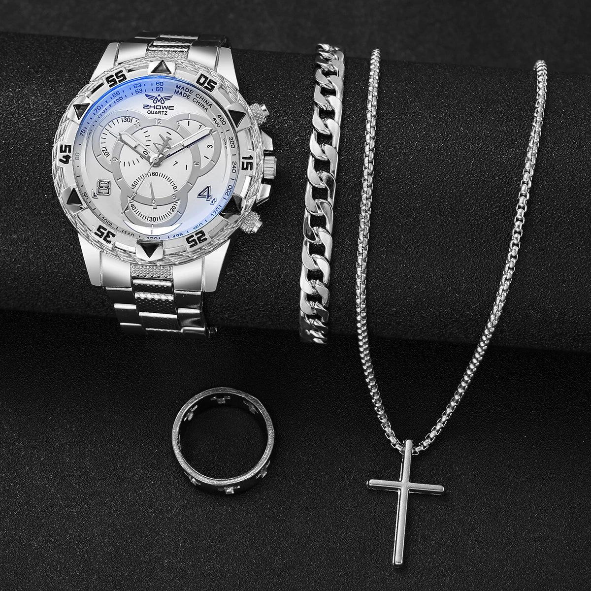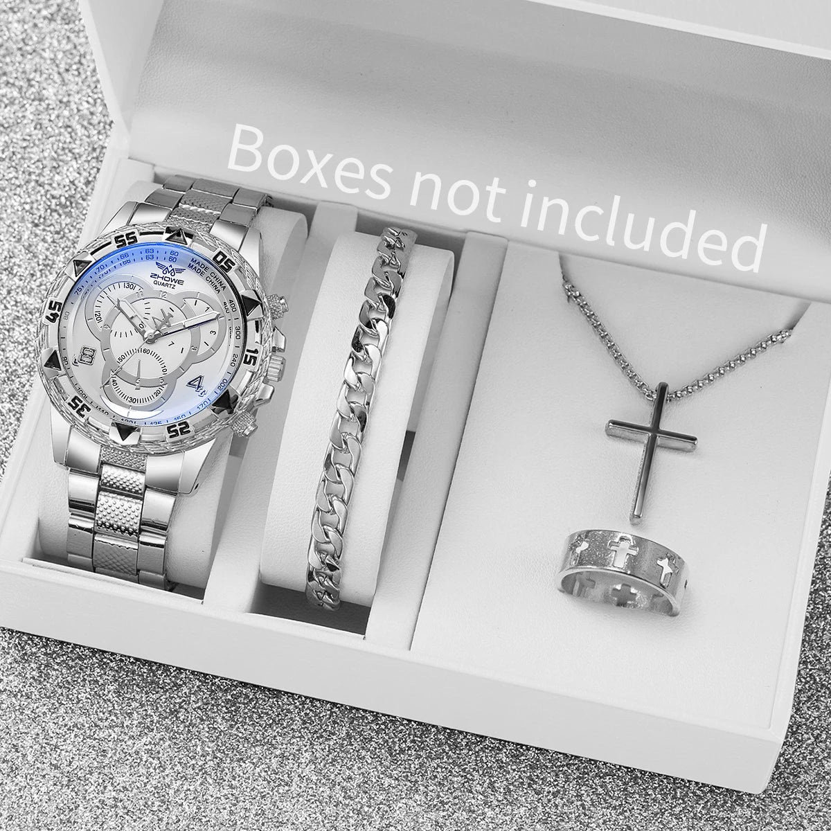 4PCS Men Business Watches Fashion Big Dial Steel Band Male's Analog Quartz Watch Clock Relogio Masculino(Without Box)