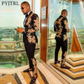 Men's Gold Sequin Applique Fashion Trend Suit Set High-Quality Casual Jacket And Western Pants Two-Piece Ensemble