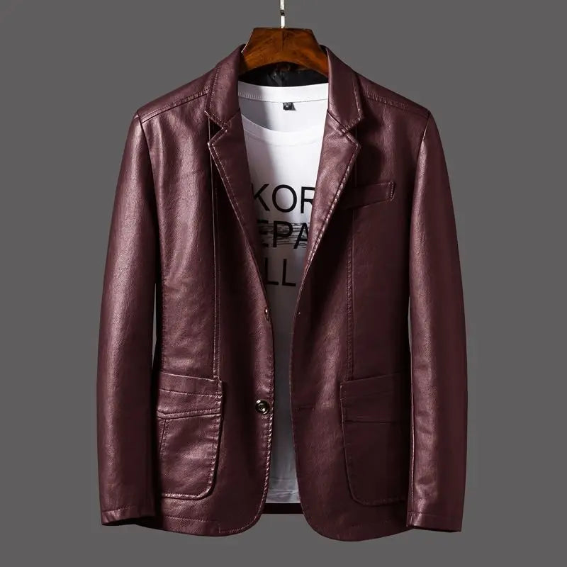 2025 Men's leather jacket, casual suit jacket, men's spring and autumn youth suit, PU leather form-fitting motorcycle jacket