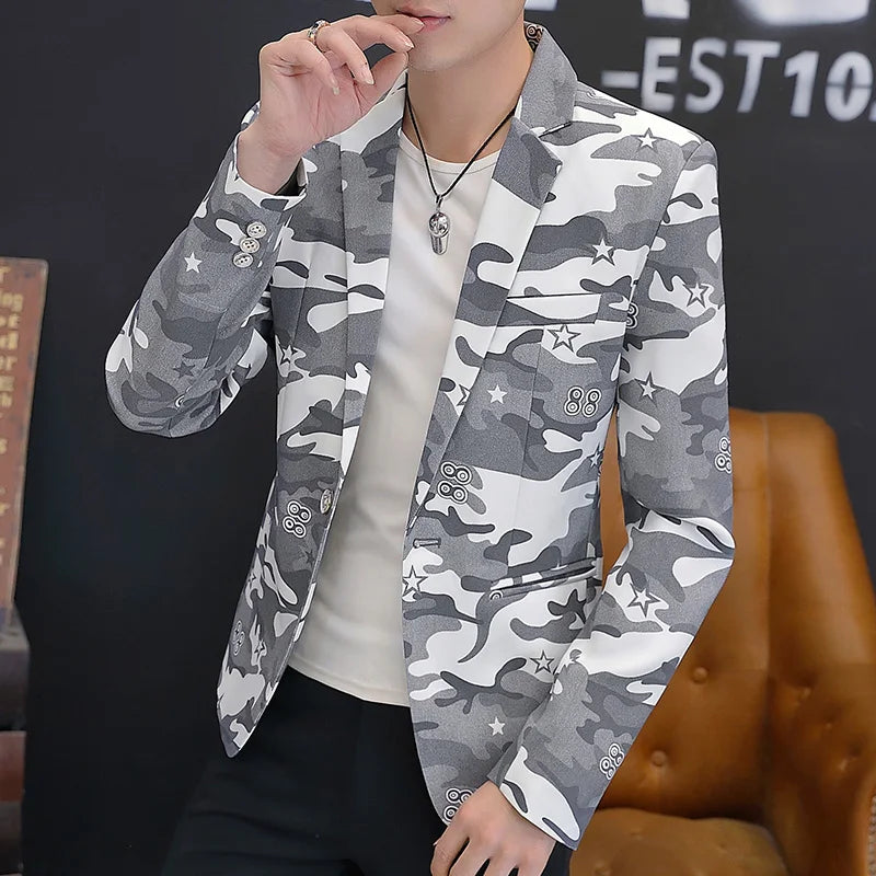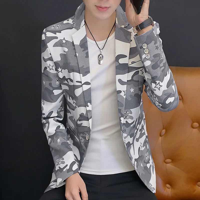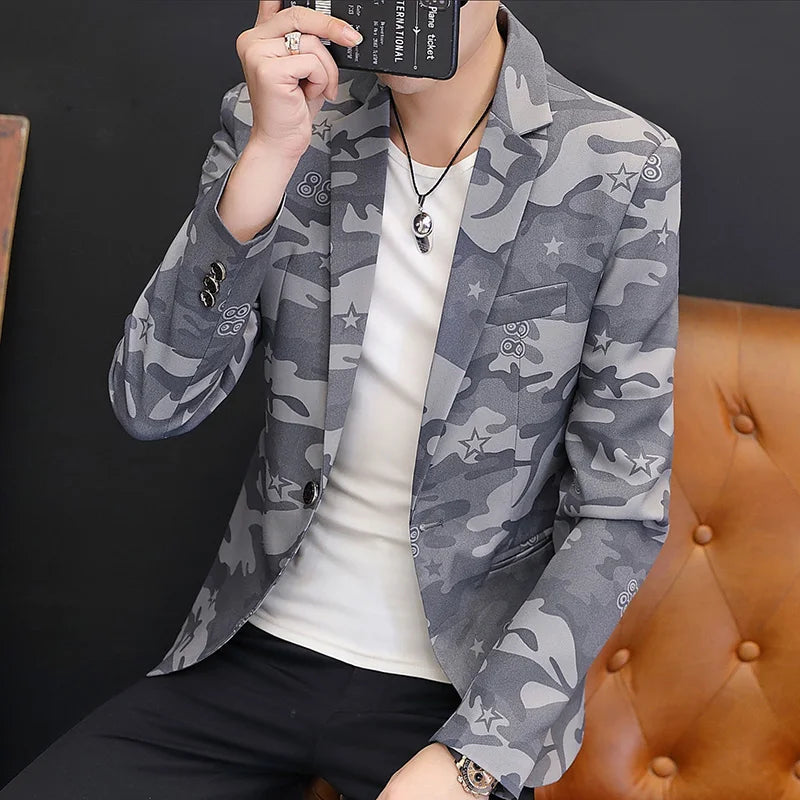 2025 British light mature style high-end camouflage small suit jacket for men, trendy, cool and casual formal single suit