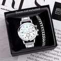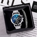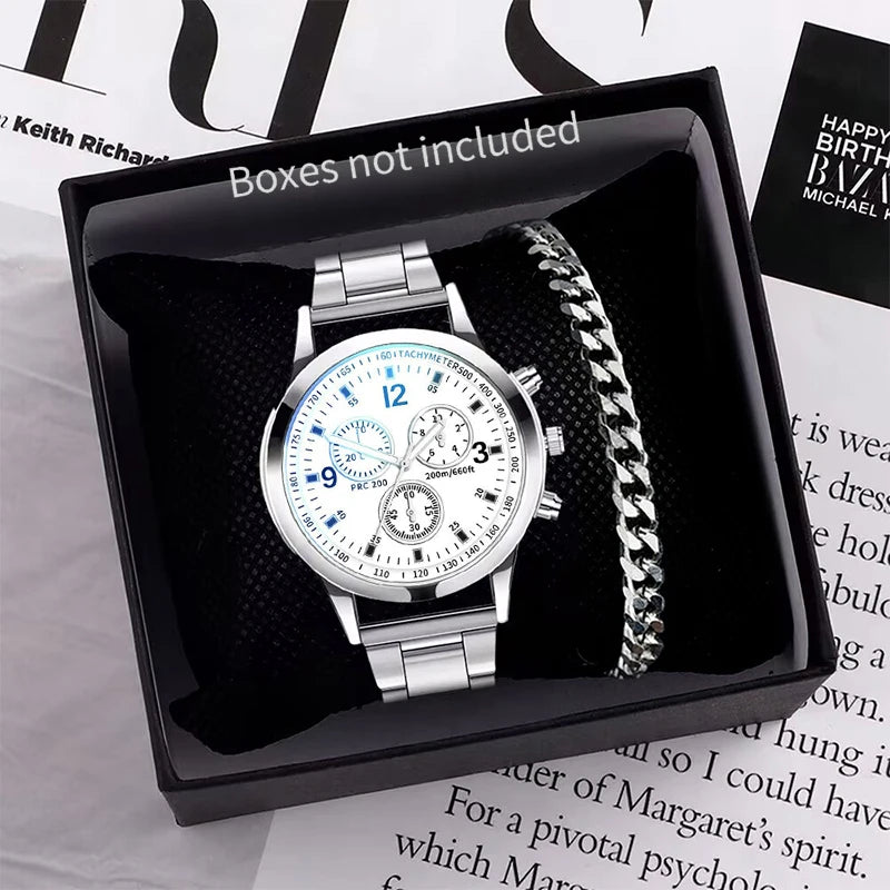 2pcs/set Fashion Men's Watch Silver Steel Band Male Business Quartz Watches Bracelet Set(Without Box)