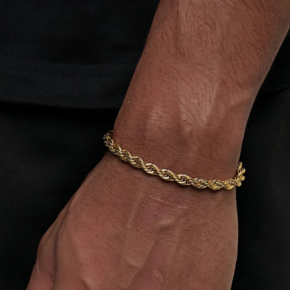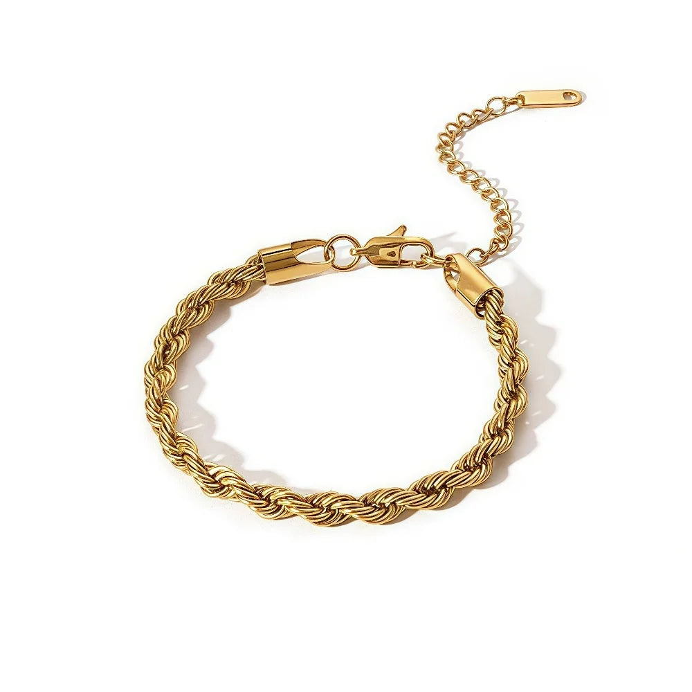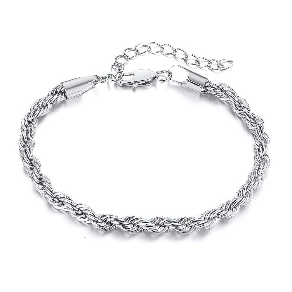 3MM Stainless Steel Twist Chain Bracelet For Men Hip Hop Square Button Titanium Steel Bracelet Retro Women Jewelry Accessories