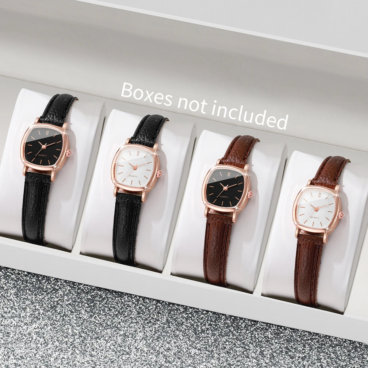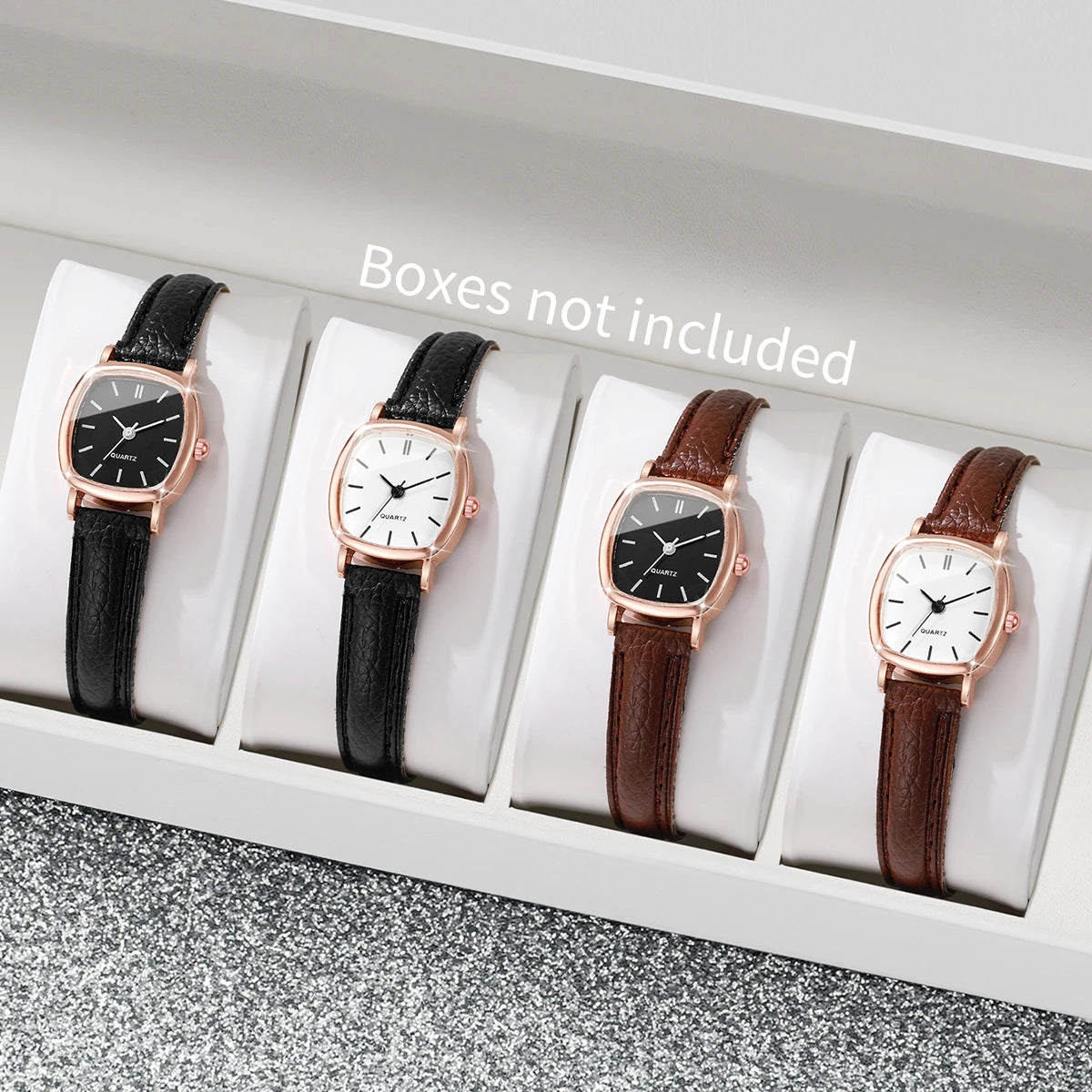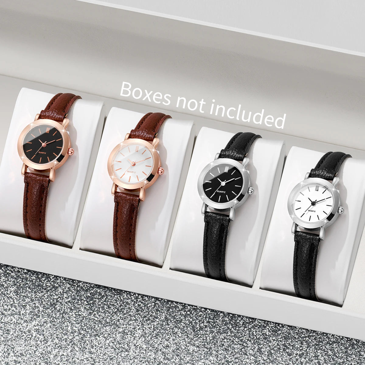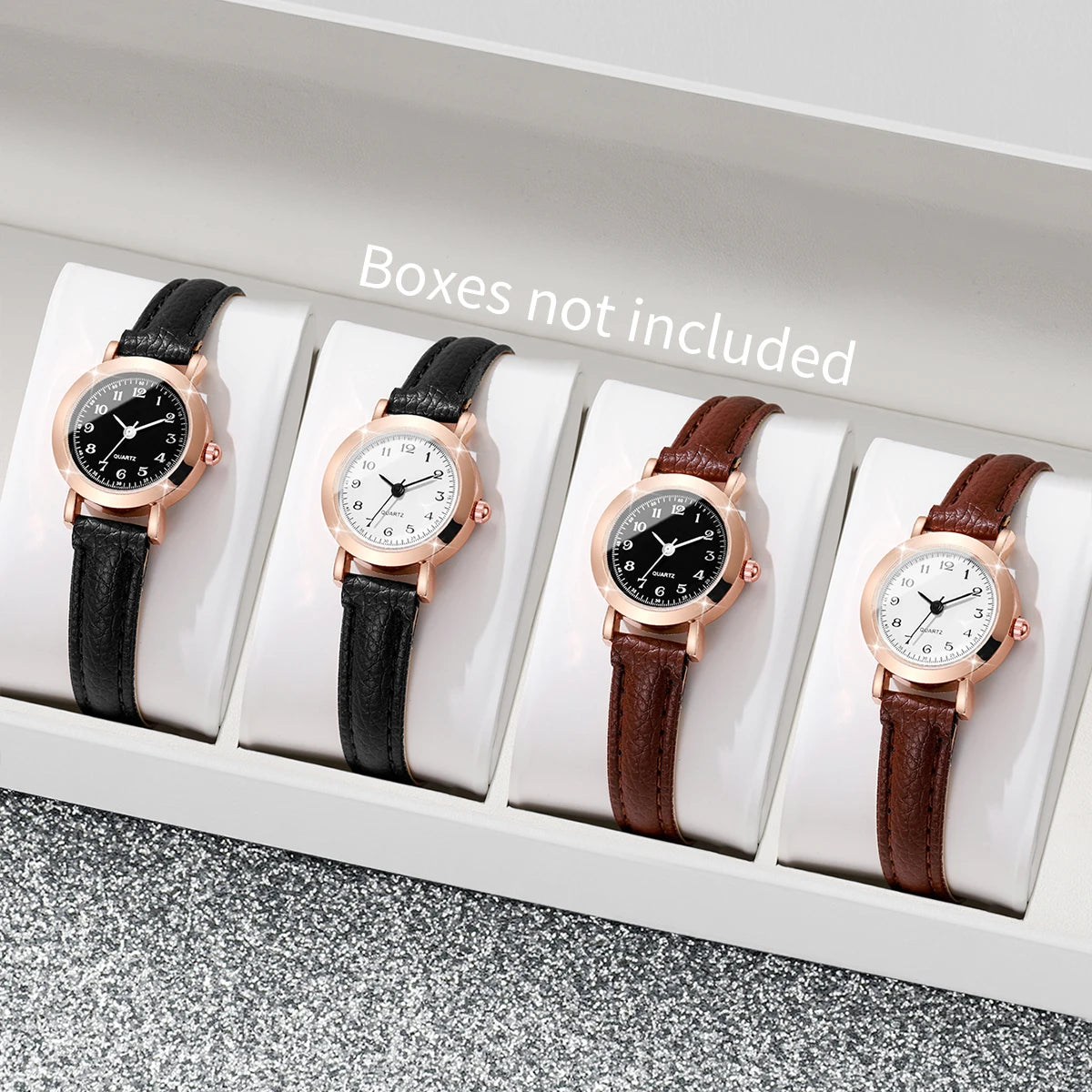 4PCS/Set Women Watches Fashion Small Dial Leather Band Quartz Watch for Ladies Reloj Mujer Girls Clock Gift(Without Box)