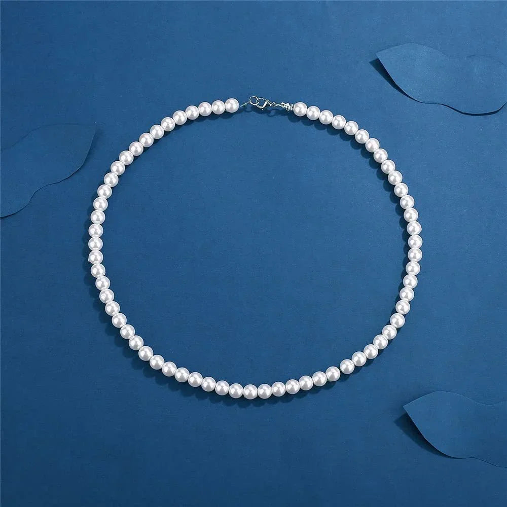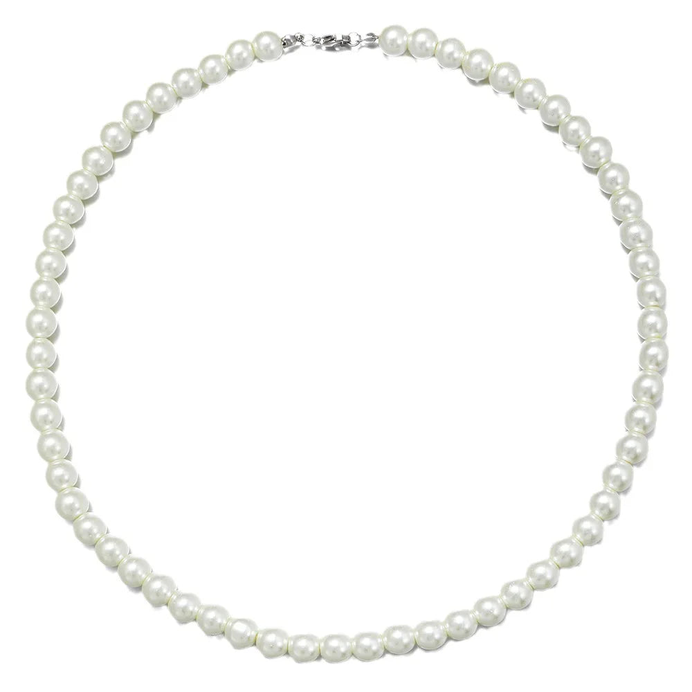 6MM French Retro Men's Pearl Chain Necklace Fashion Jewelry Accessories