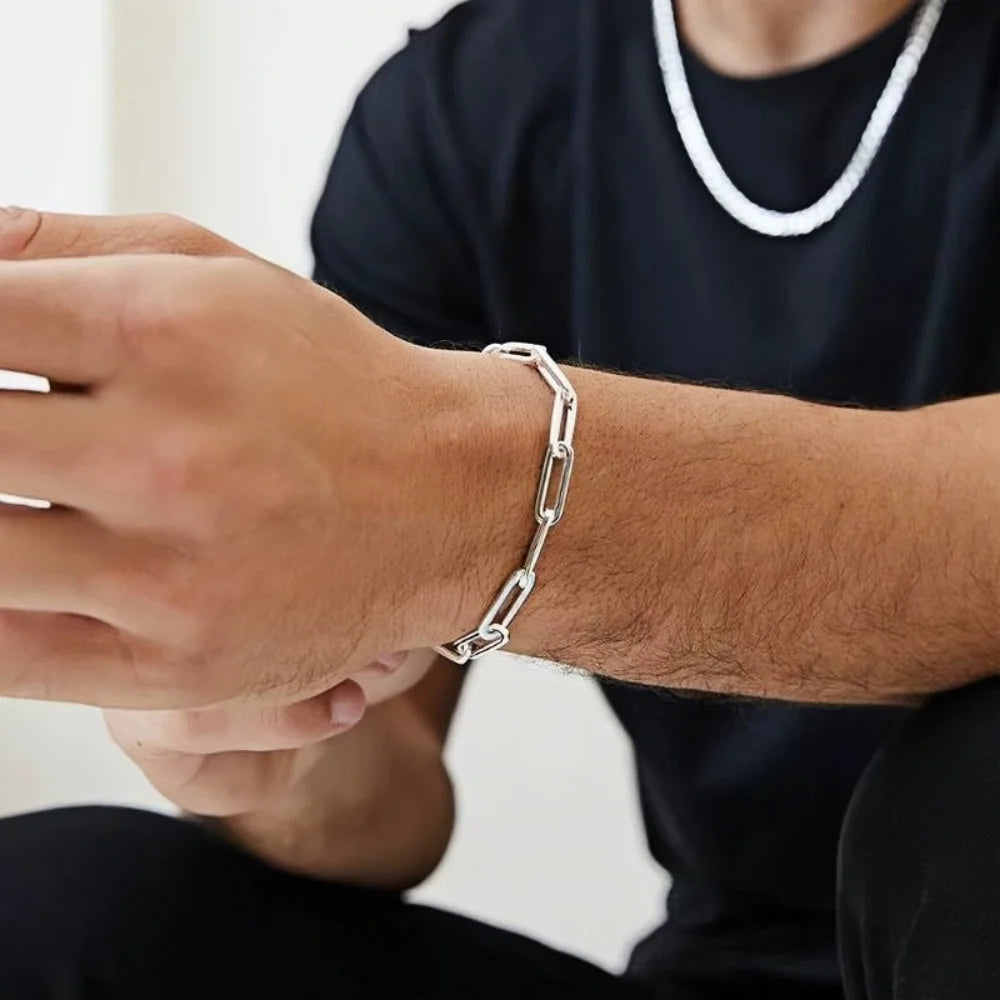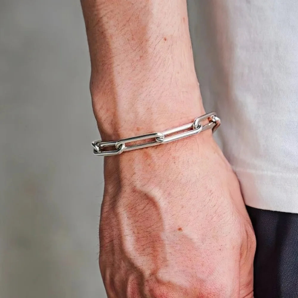 7mm Stainless Steel Coarse Men Bracelet Hip Hop Geometric Square Closure Bracelet Fashion Jewelry Fashion Accessories Gifts