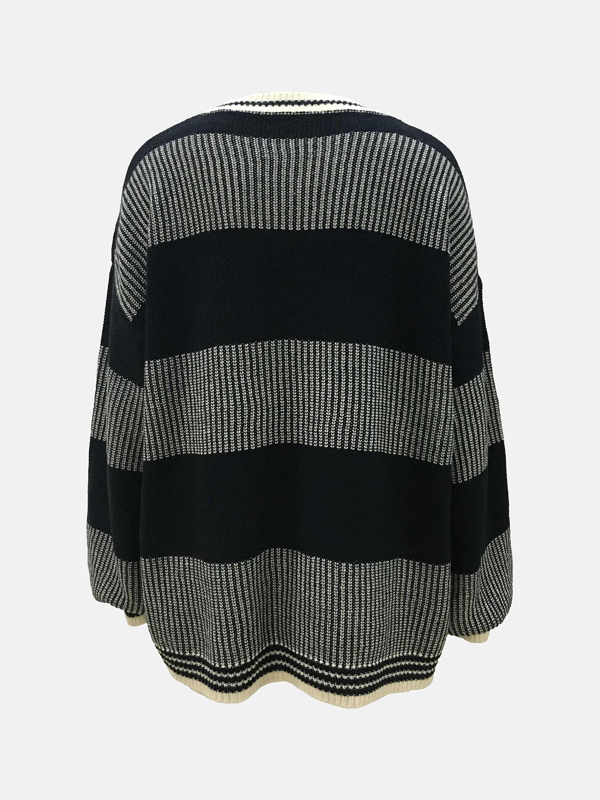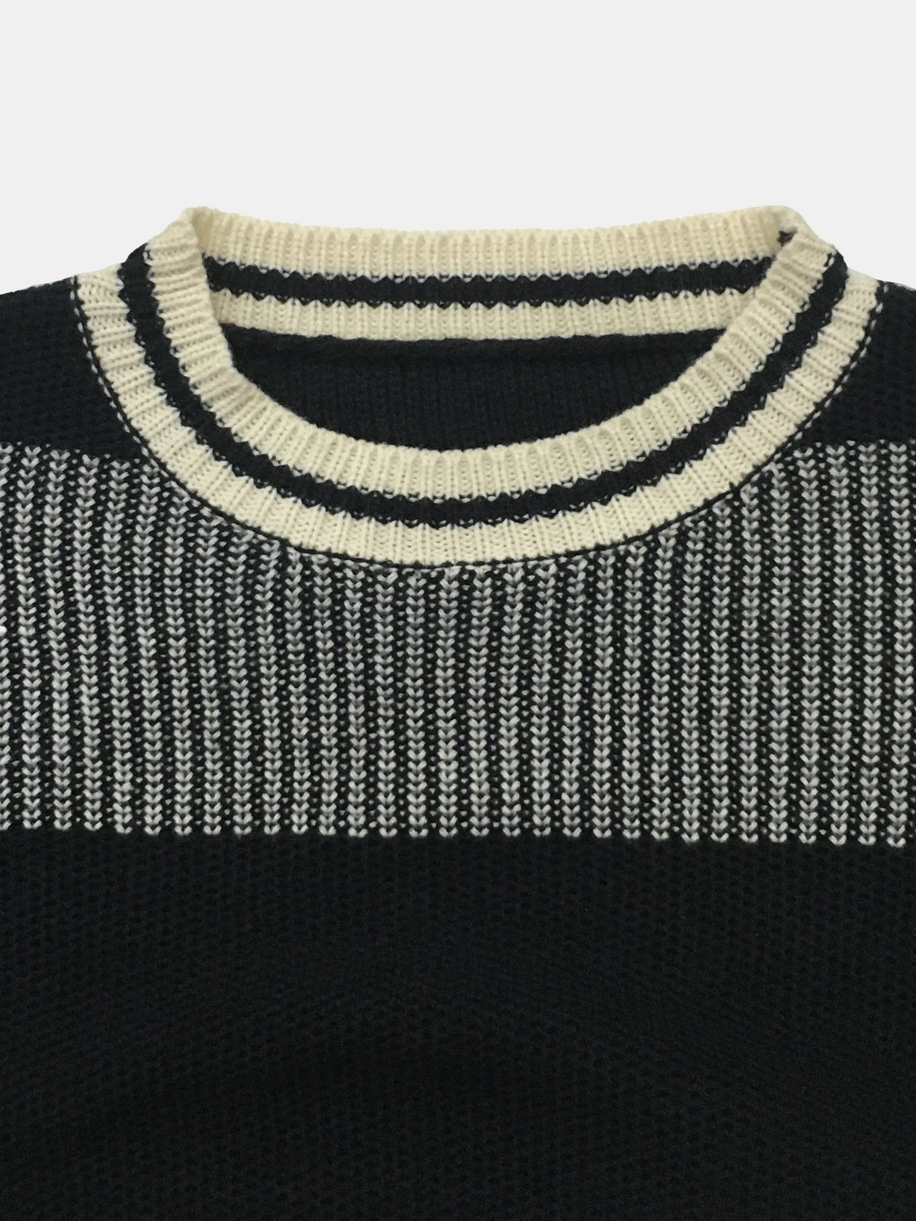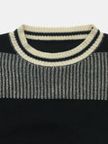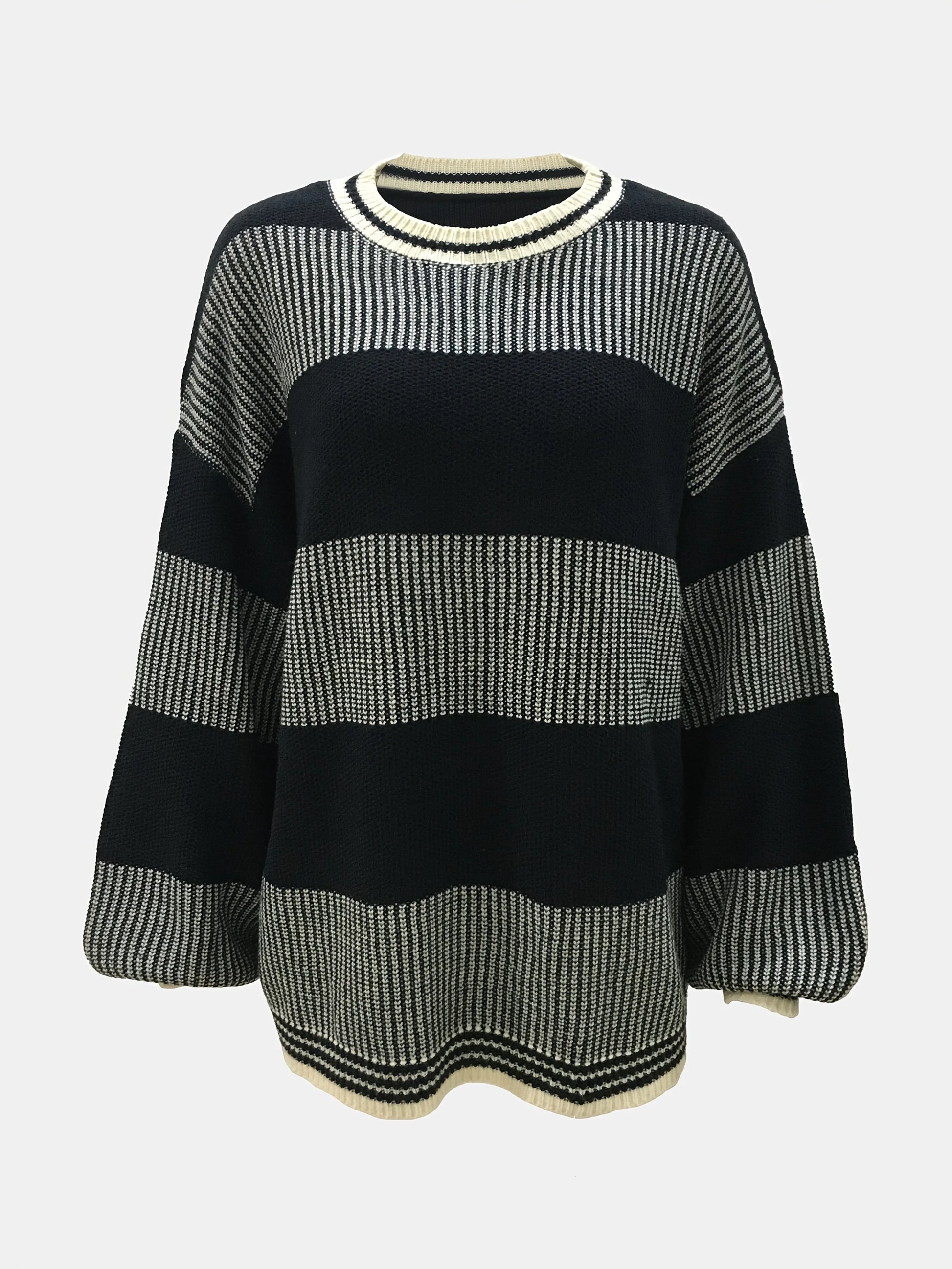 Autumn and winter women's round neck casual lantern sleeve contrasting woolen pullover top