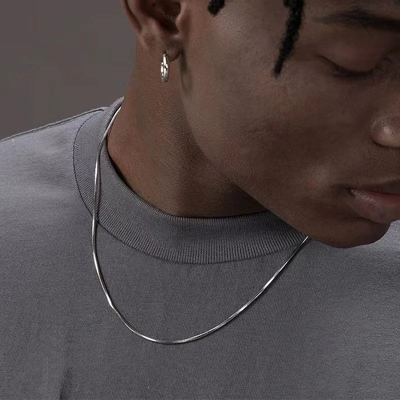 Hip Hop Men Stainless Steel Chain Necklace Simple Silver Color Square Snake Bone Chain Necklace Fashion Jewelry Accessories
