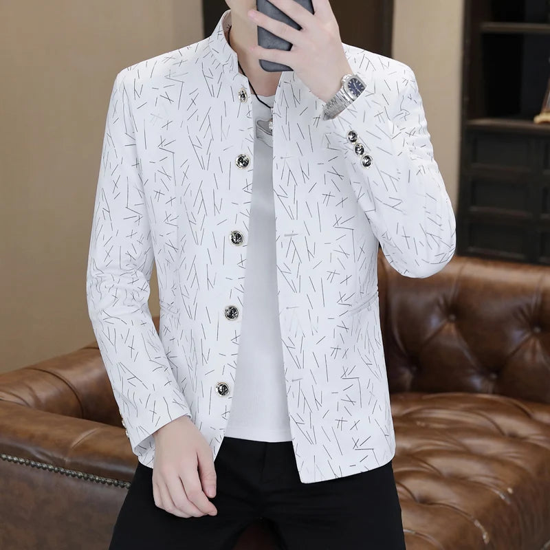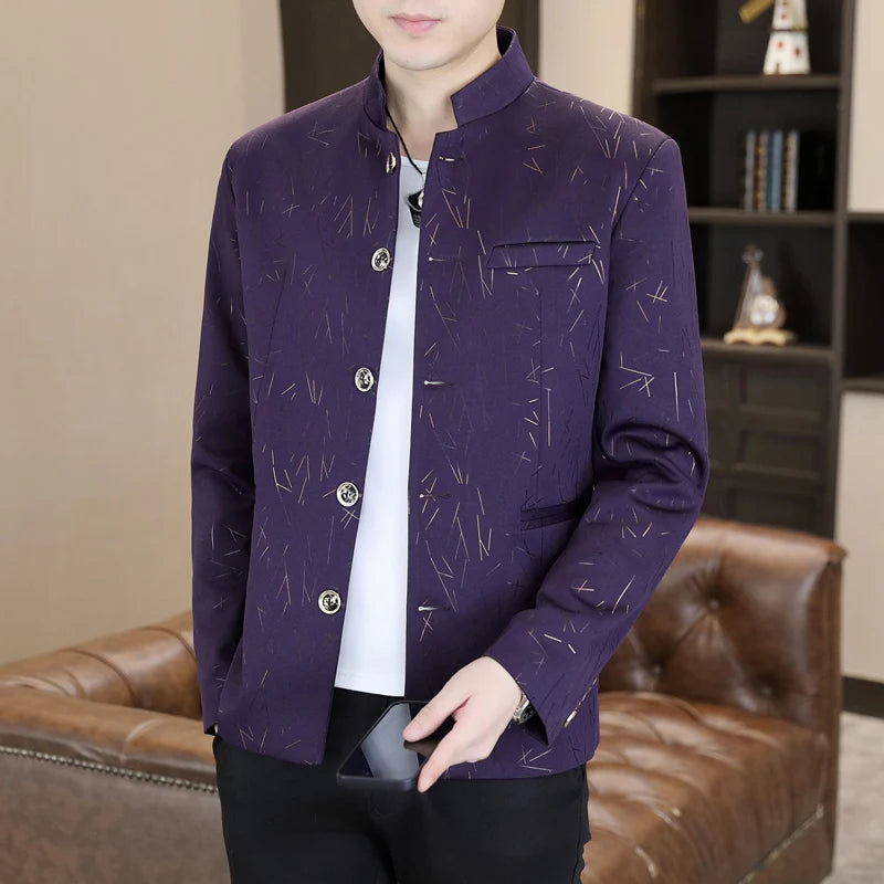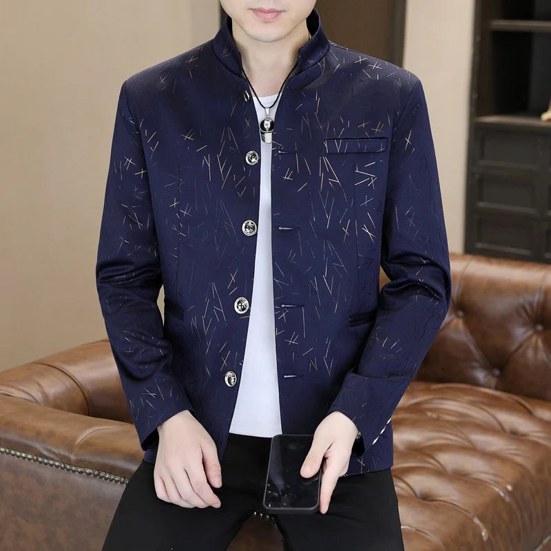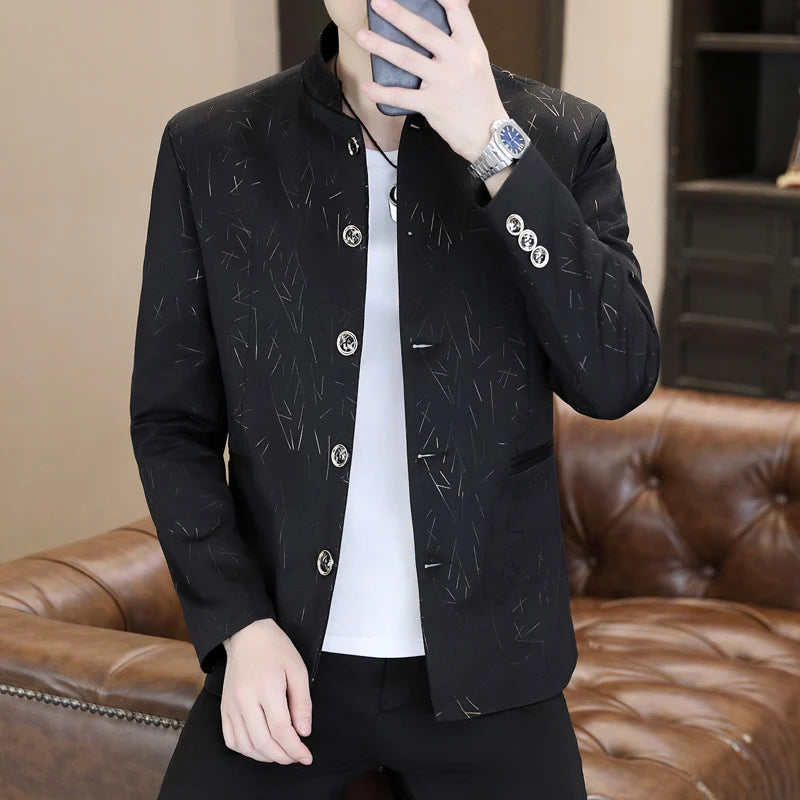 The groom in the new-style Zhongshan suit is cool and stylish, with a slender Chinese stand-up collar for the wedding. He wears