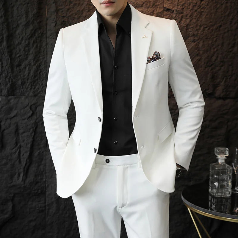 2025 Slim Fit Two-Piece Suit Set S-7XL High-Quality Stylish Korean Solid Color Suit with Trousers for Men