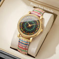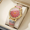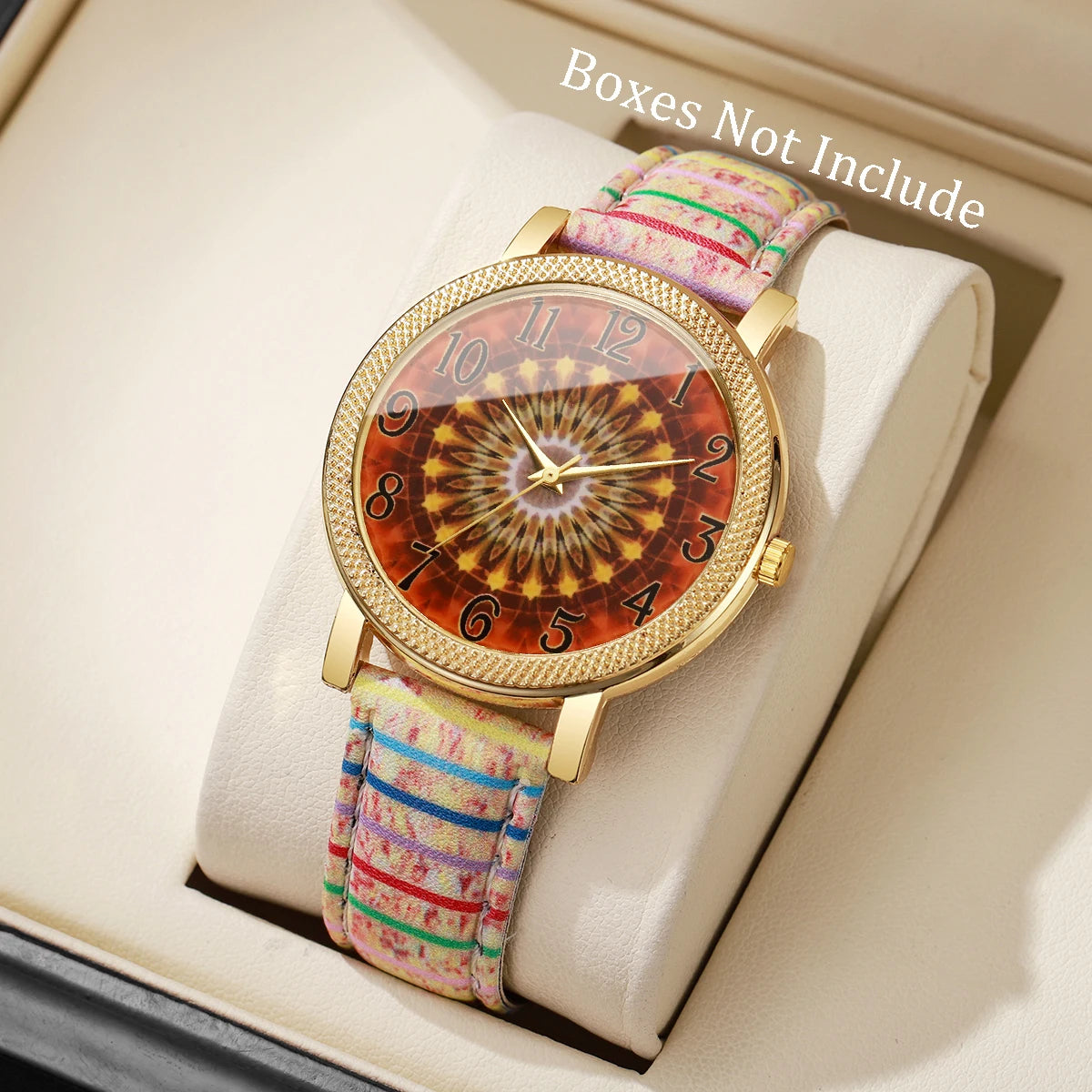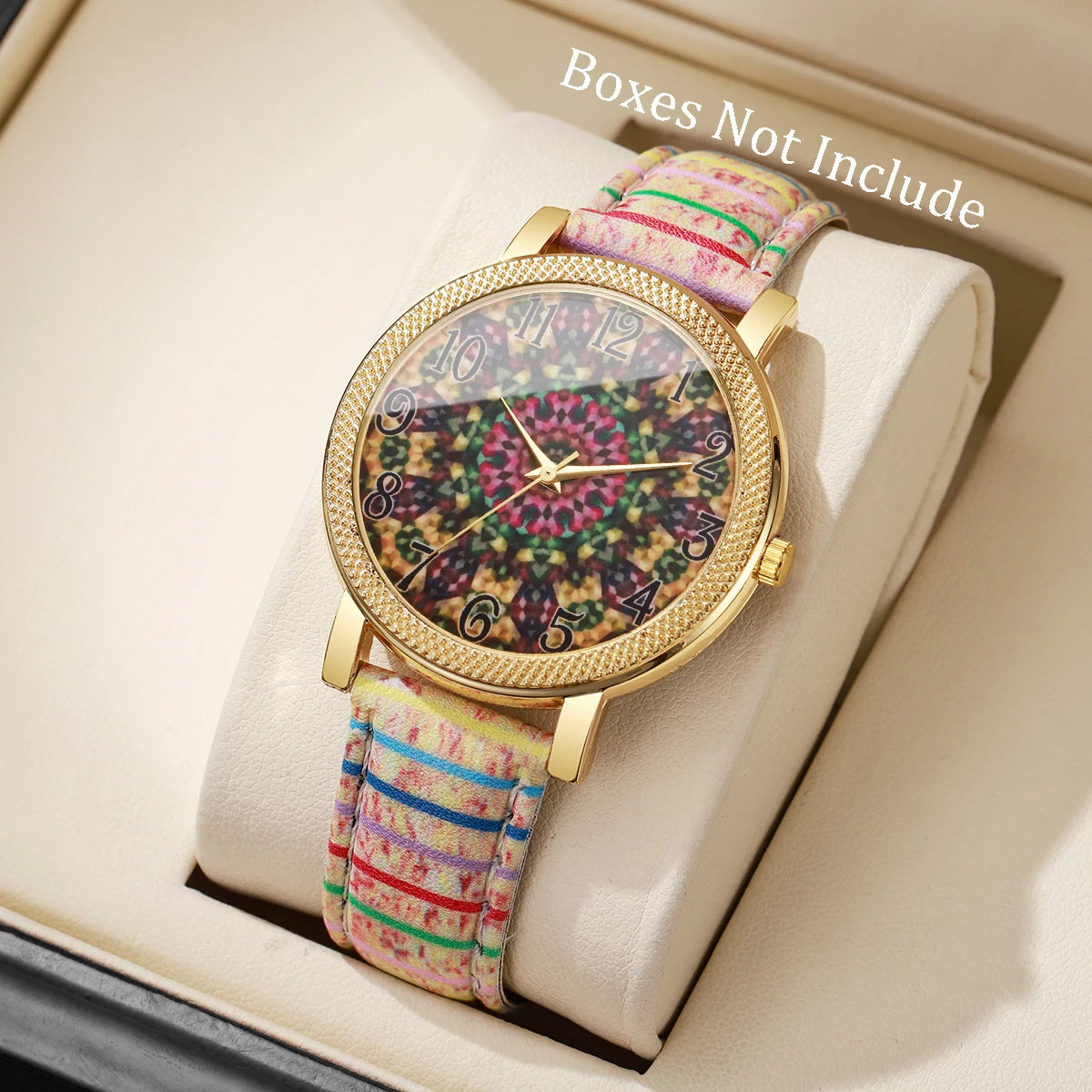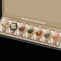 1/6/7PCS Vintage Printed Women Watches Fashion Leather Strap Ladies Quartz Wristwatch Reloj Mujer Girls Clock Gift (Without Box)