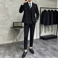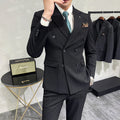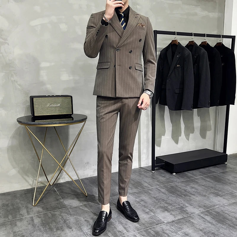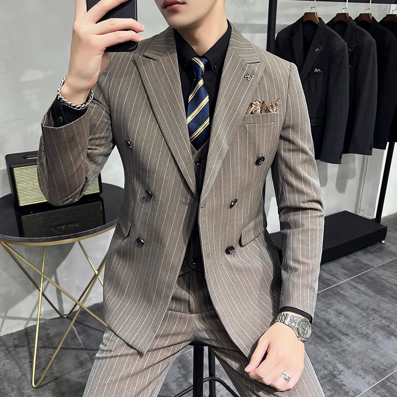 2025 High-quality Korean version slim-fit business (suit + vest + trousers) striped double-breasted suit three-piece set