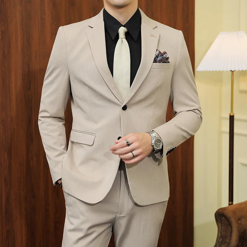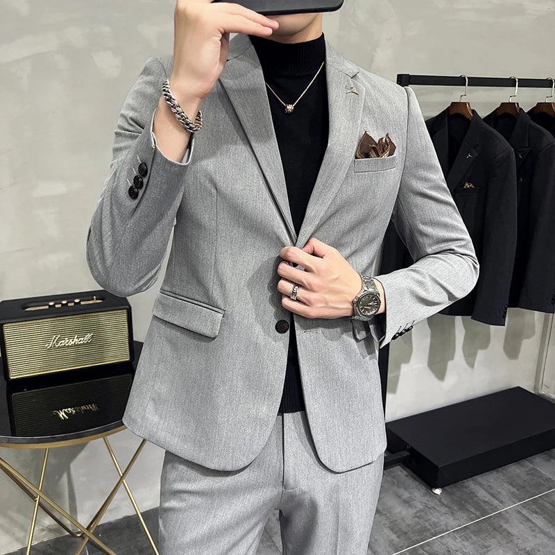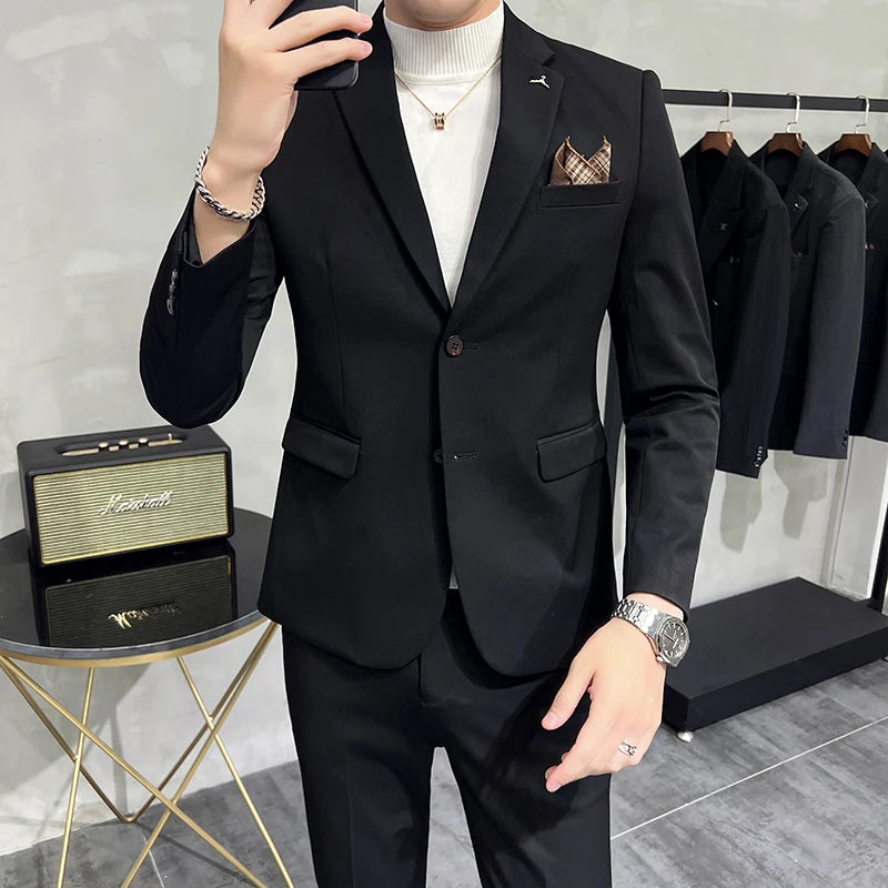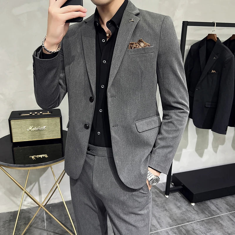 2025 Slim Fit Two-Piece Suit Set S-7XL High-Quality Stylish Korean Solid Color Suit with Trousers for Men