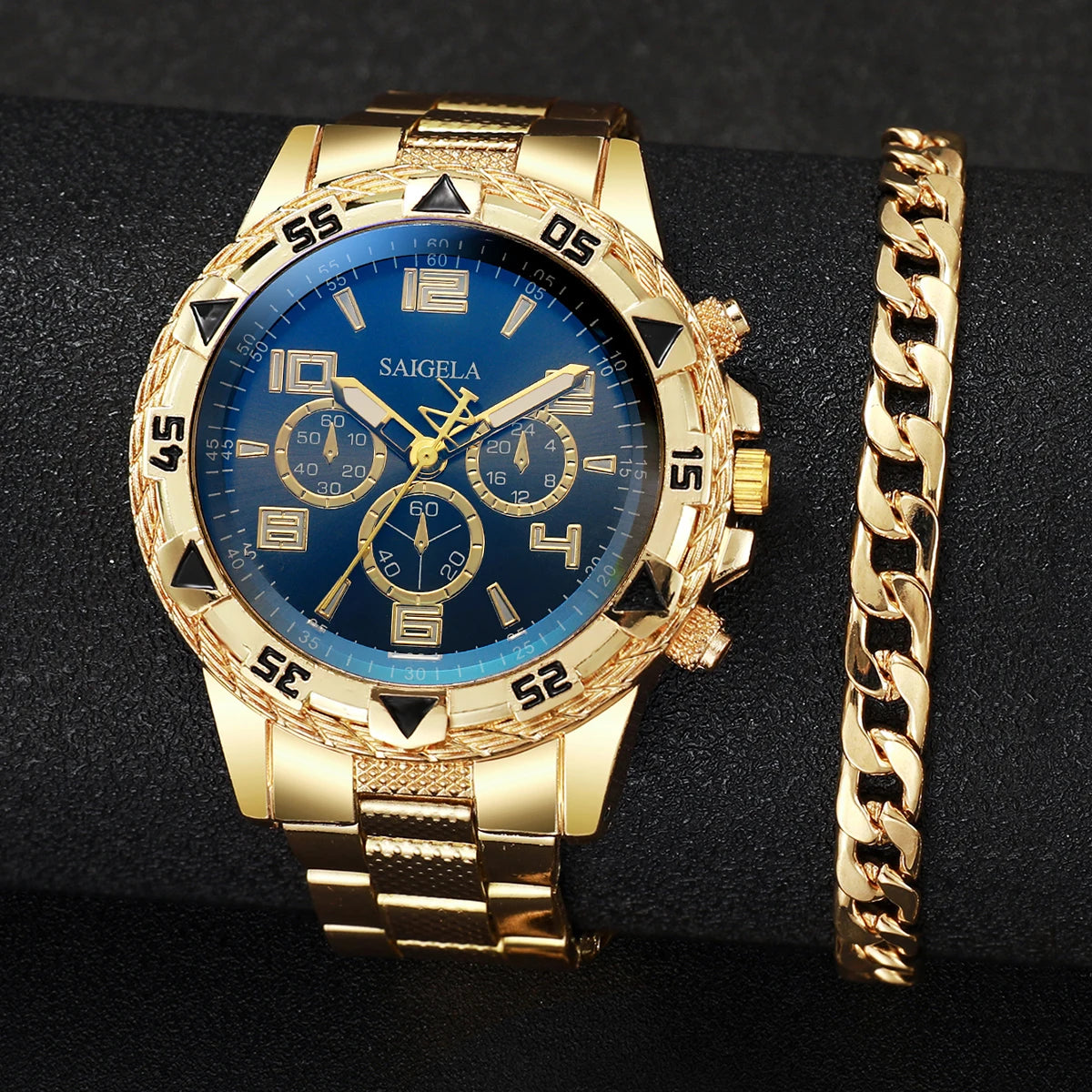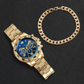 2PCS Fashion Mens Stainless Steel Watches Luxury Quartz Wristwatch Men Business Watches Bracelet Set Reloj Hombre(Without Box)