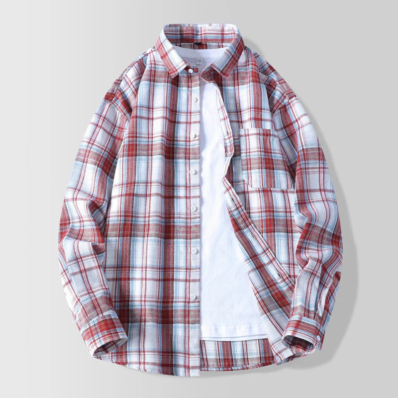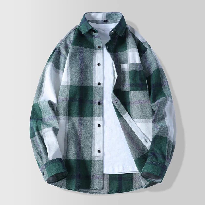 High-quality autumn new style, fashionable, stylish, versatile and casual checkered men's shirt for teenagers