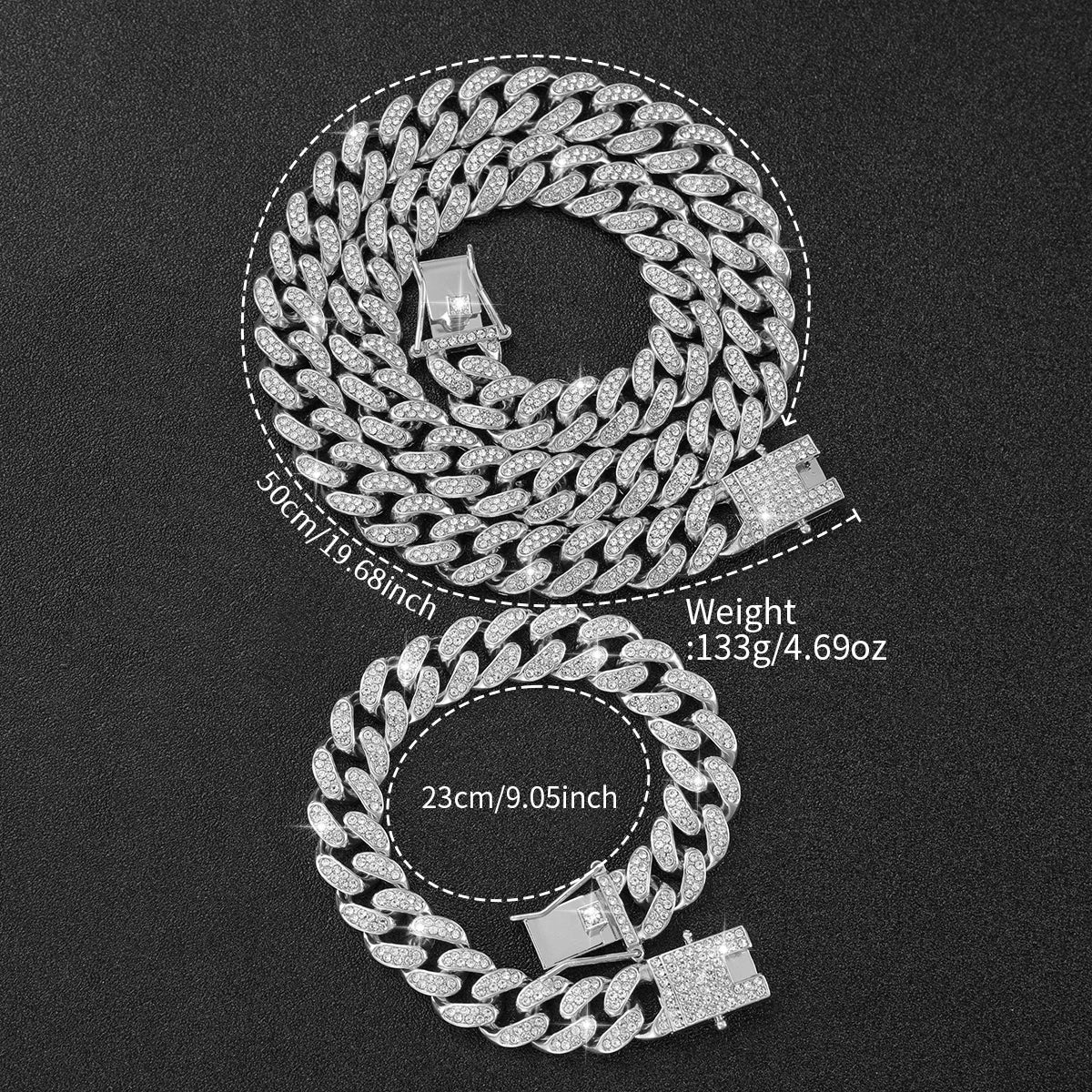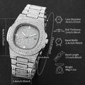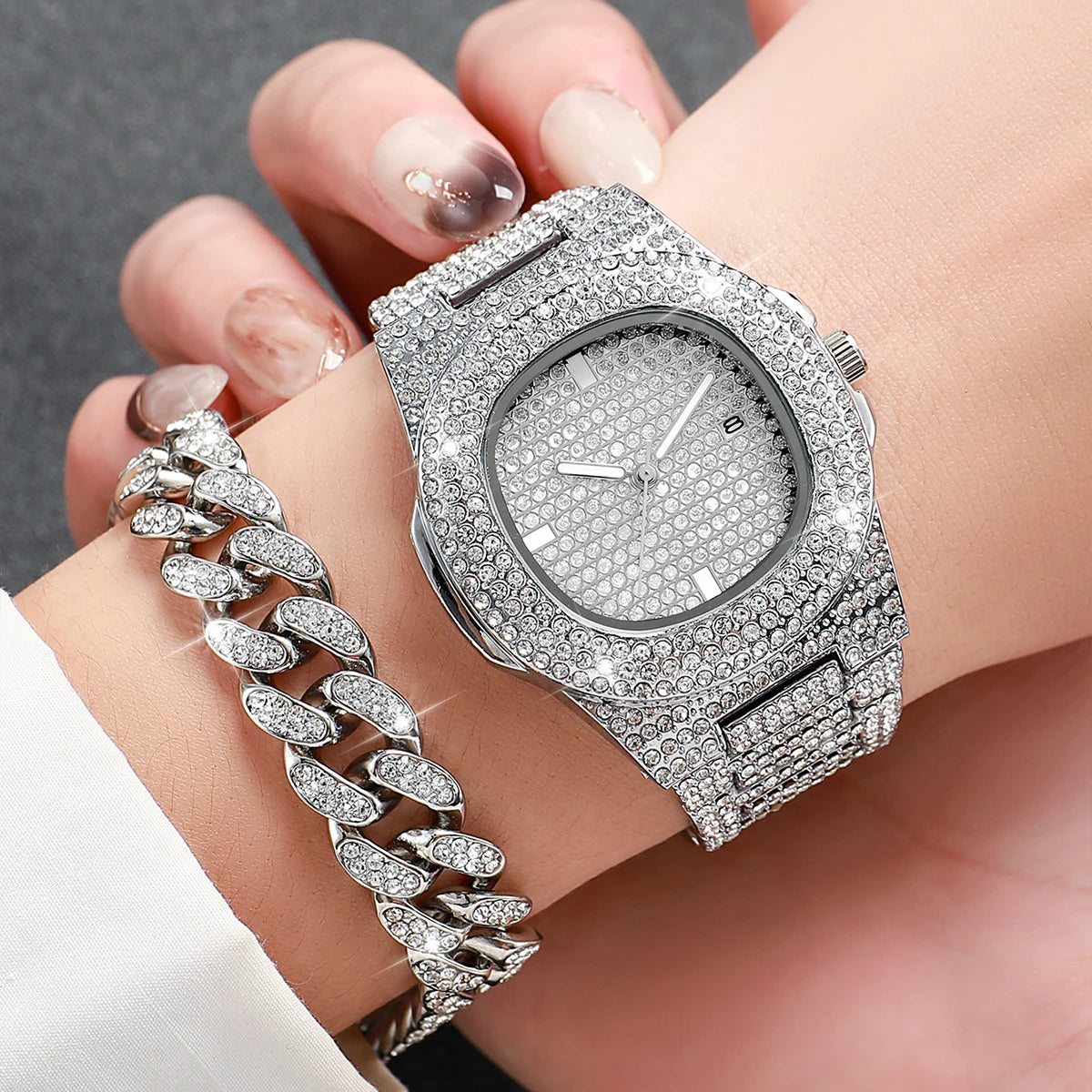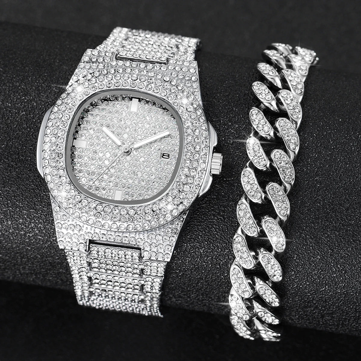 3PCS Luxury Rhinestone Men Watches Hip Pop Square Steel Band Quartz Watch Diamond Jewelry Set Relogio Masculino Reloj Hombre