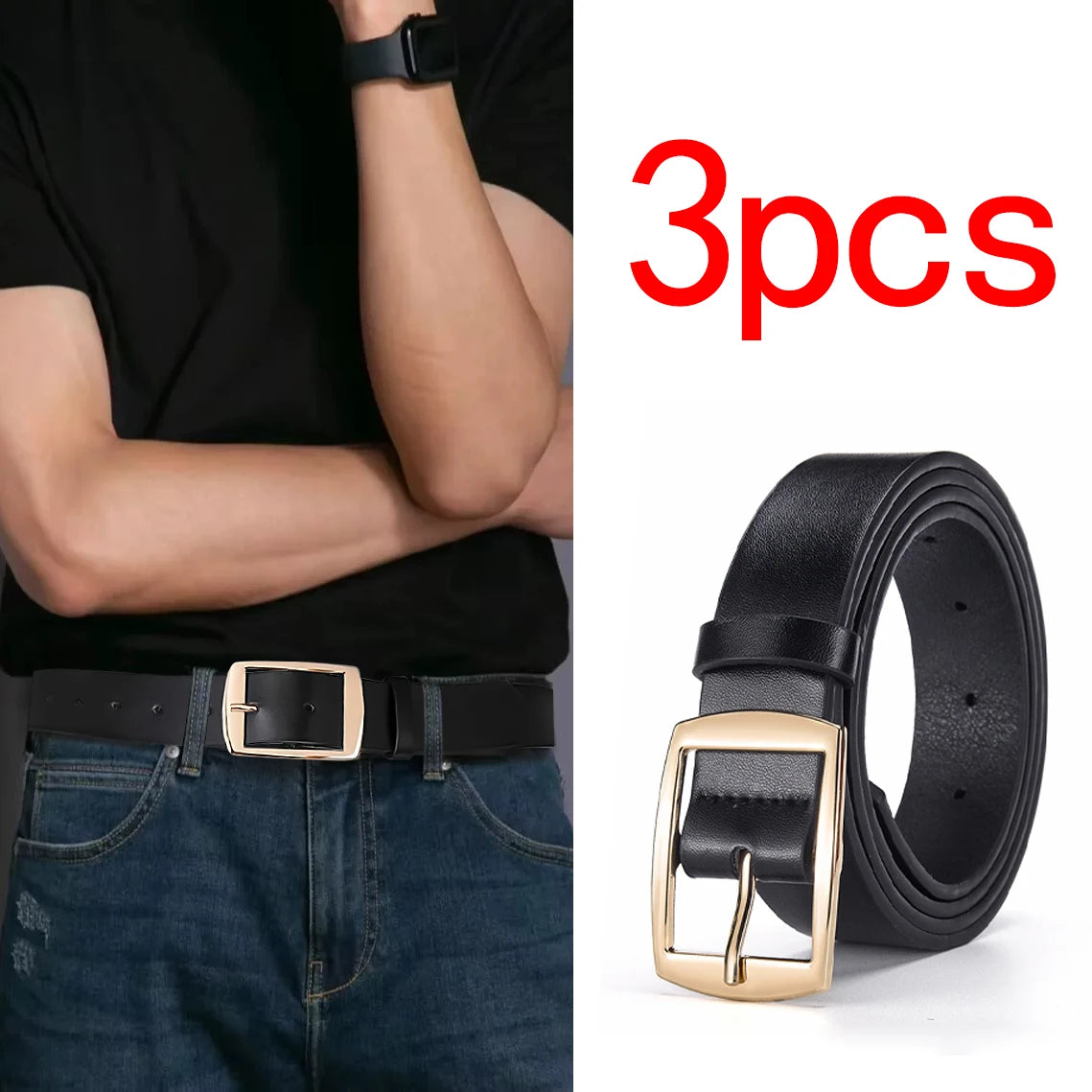 3pcs Men's Belt, Gold Alloy Buckle Belt, Fashionable, Atmospheric, Simple, Casual Style Jeans Decorative Belt, Is A Good Gift