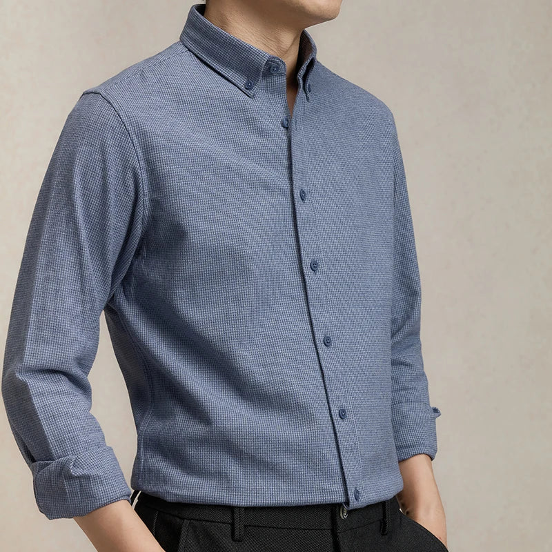 Autumn new high-quality, fashionable, stylish and versatile casual men's long-sleeved shirt with a checkered pattern
