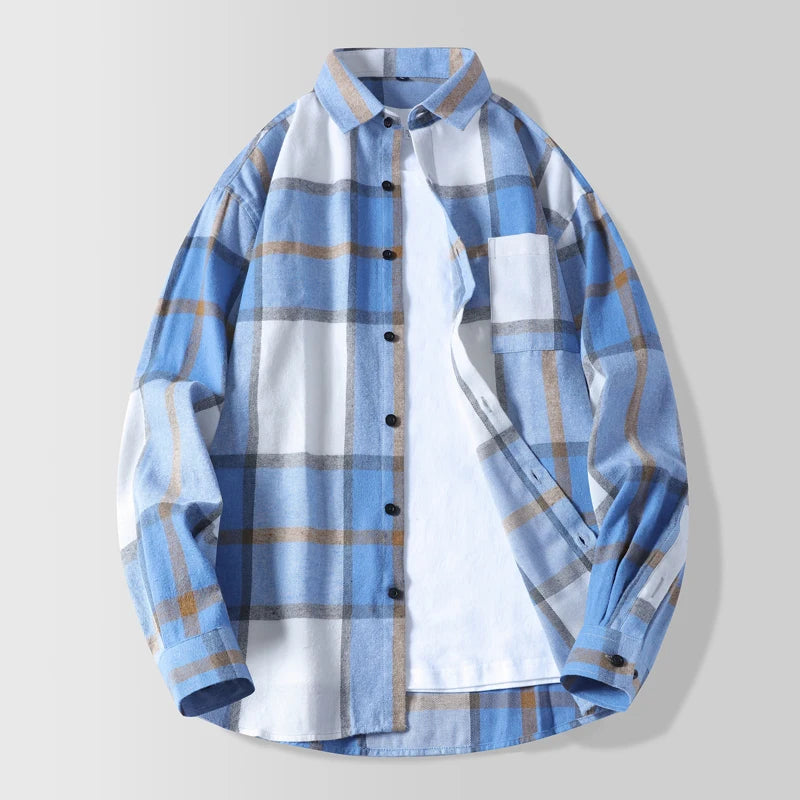 High-quality autumn new style, fashionable, stylish, versatile and casual checkered men's shirt for teenagers