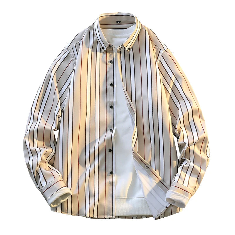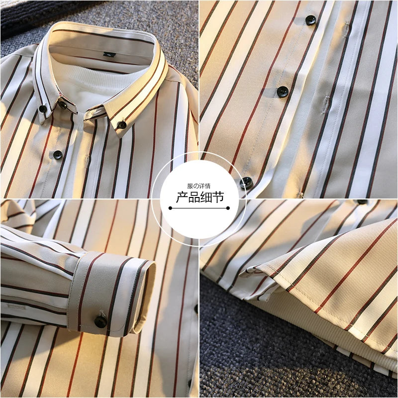 High-quality new men's fashionable, stylish, versatile, trendy, casual, business banquet striped long-sleeved shirt