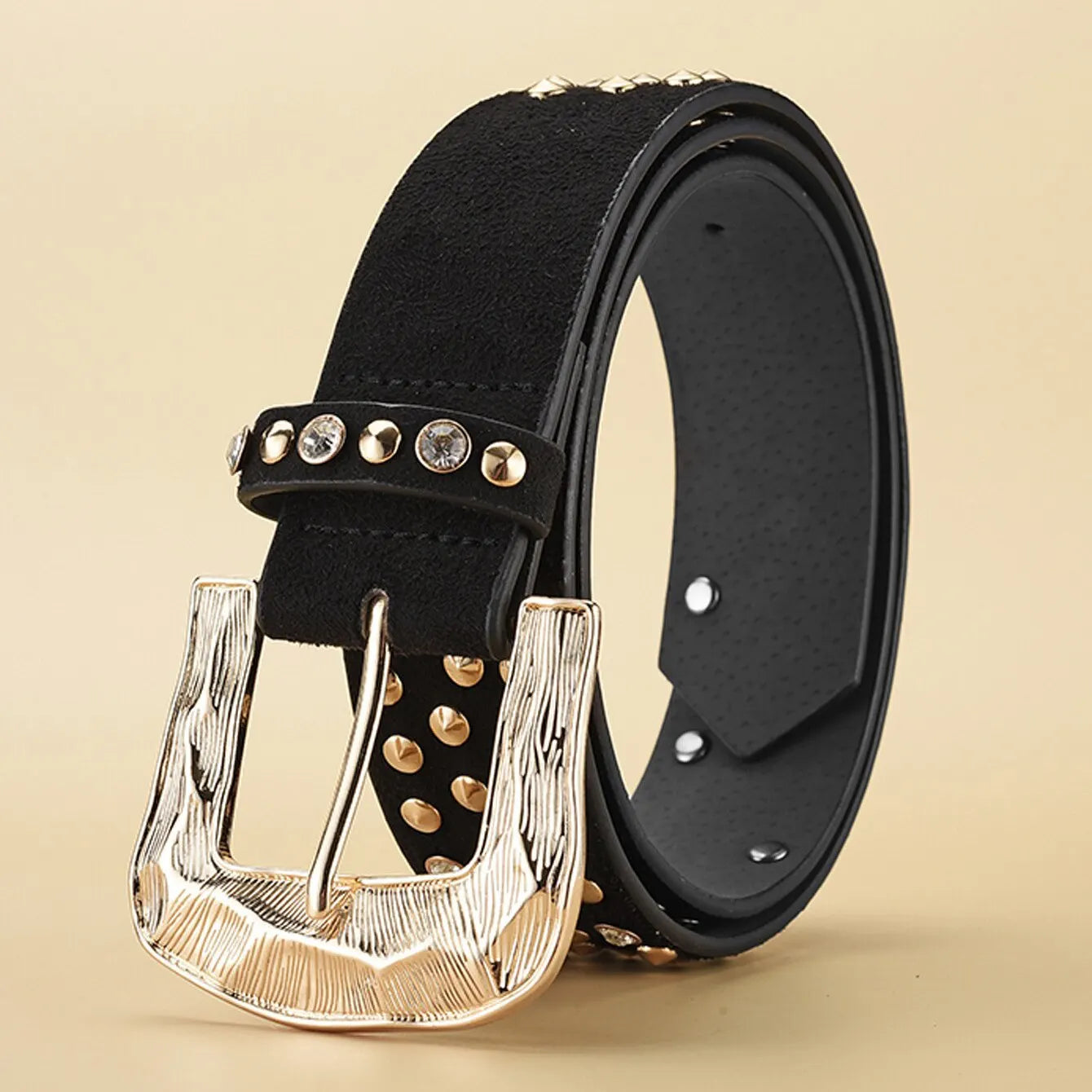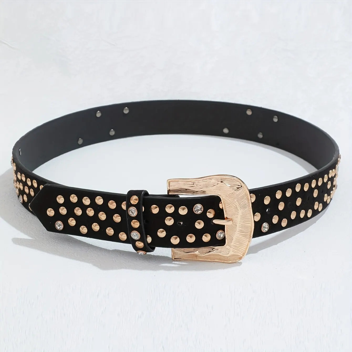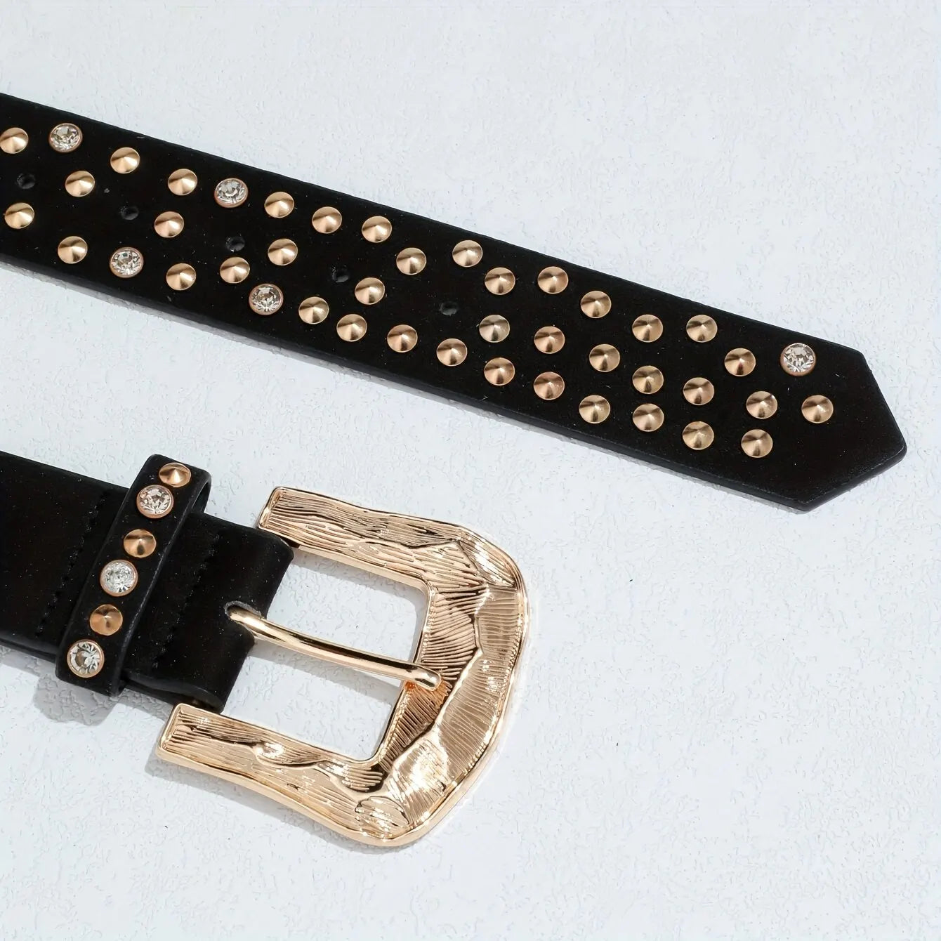 New Women's Belt Fashion Embedding Rhinestone Round Rivet Bel Versatile Fashion Soft PU Leather Belt Jeans Punk Rock Y2K Belt