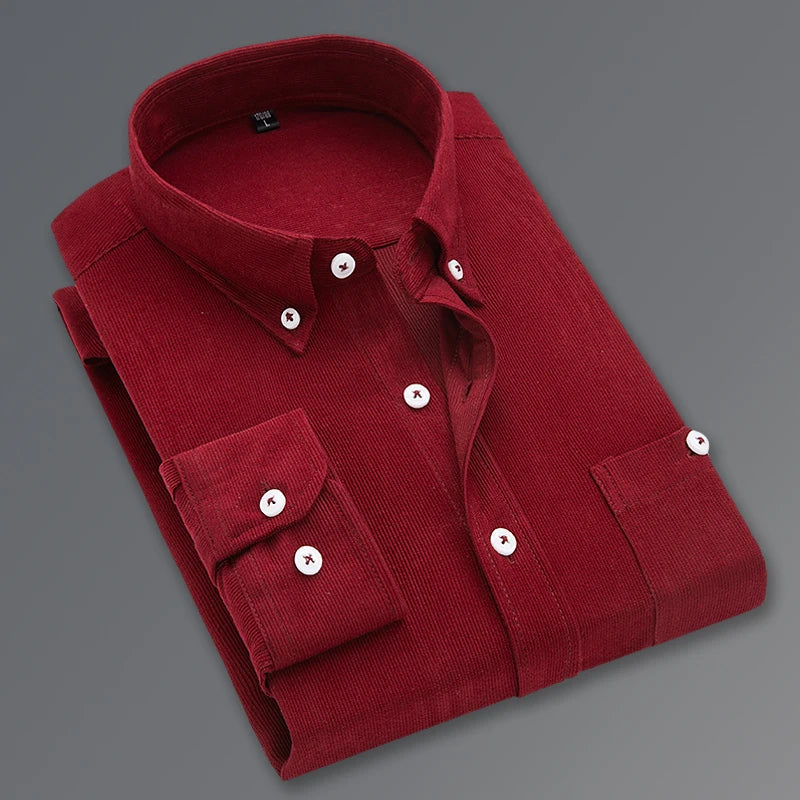 High-quality men's fashionable, stylish, versatile and trendy casual banquet corduroy solid-color long-sleeved shirt in autumn
