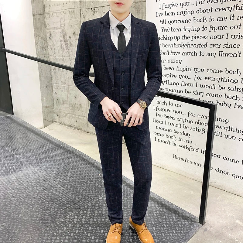 2024 new style (suit + vest + trousers) Fashion business formal Korean version slim men's suit trend gentleman three-piece set